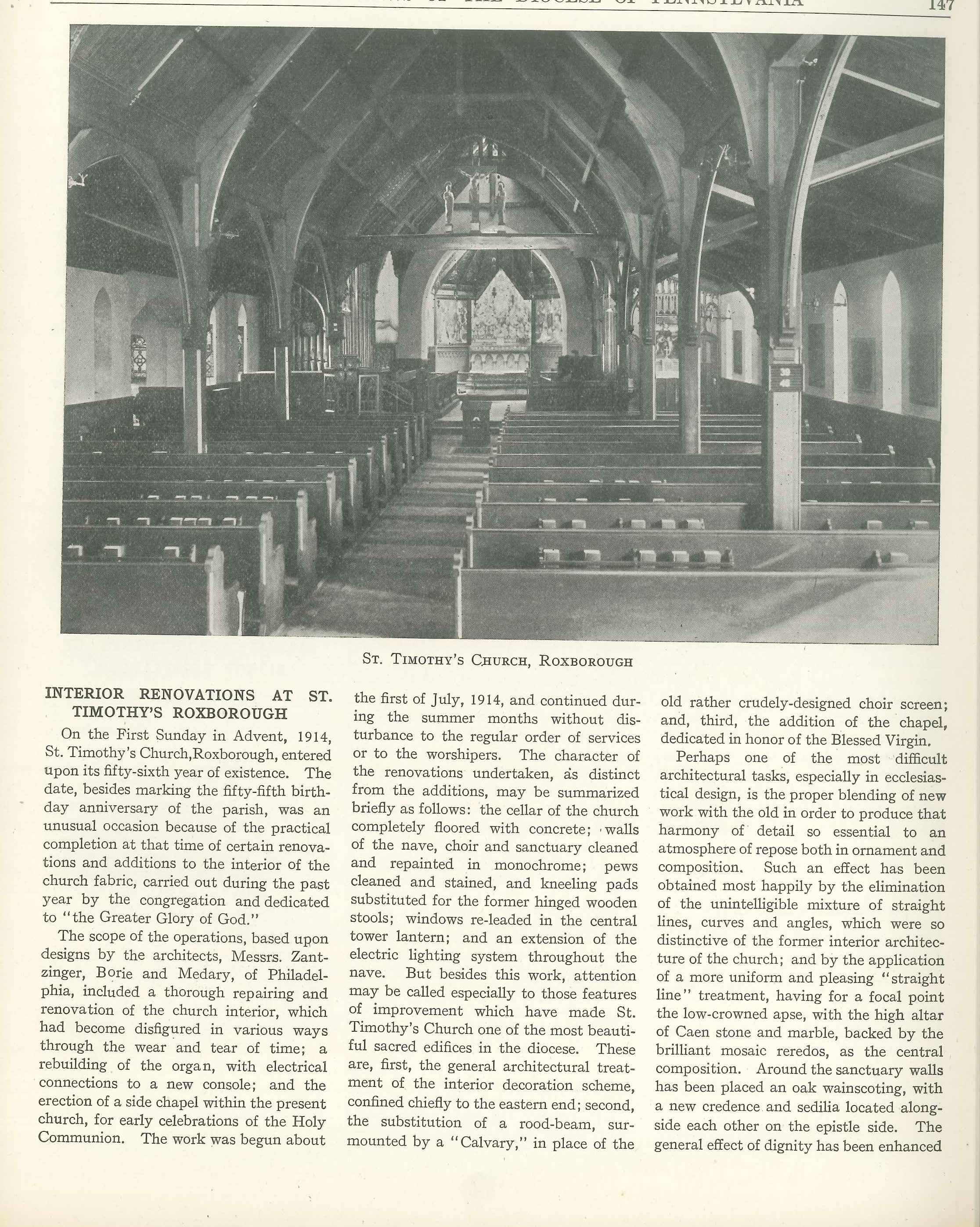 Interior Renovations at St. Timothy’s Church, Roxborough (1914)