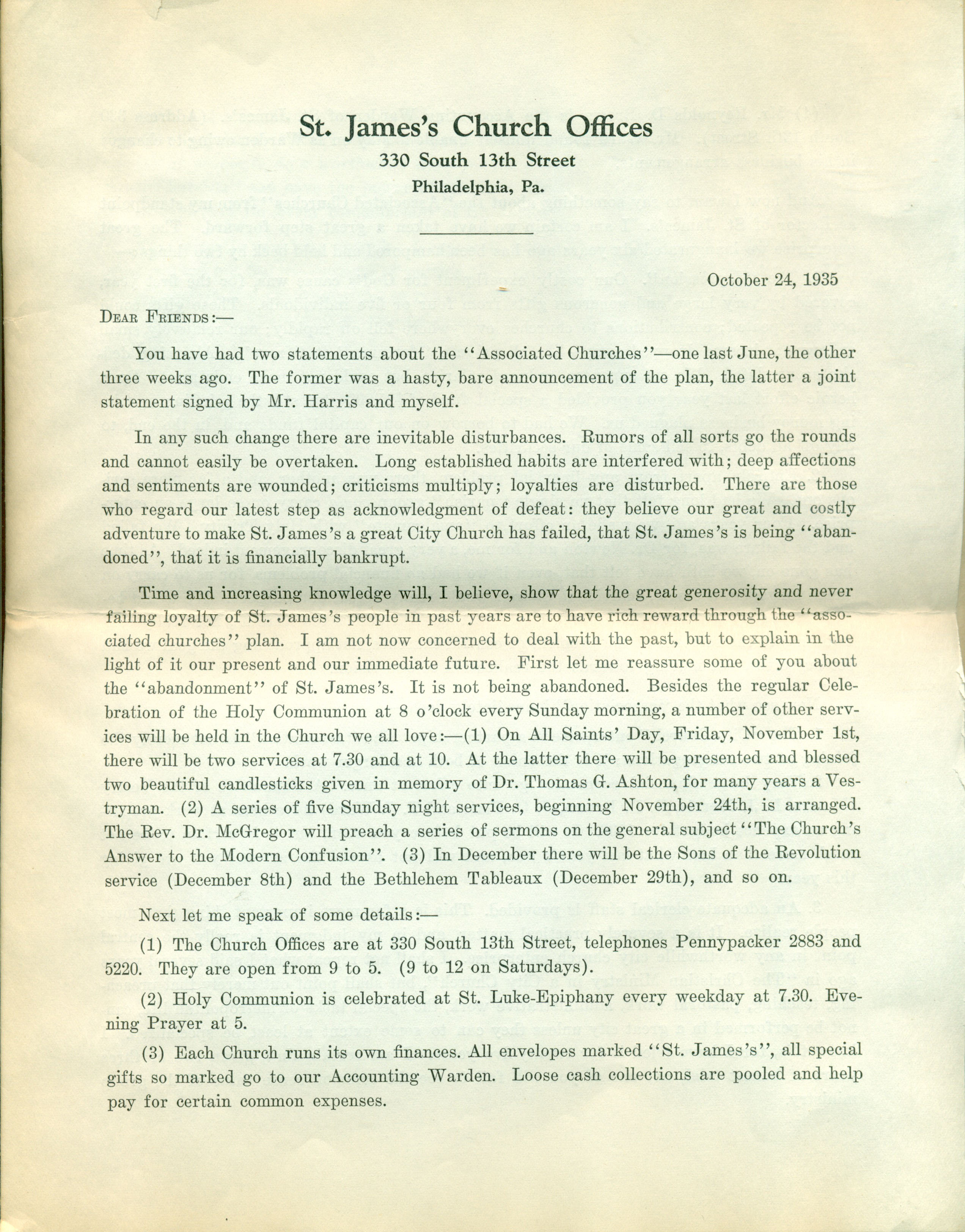 Philadelphia Committee Seeks Funds for the Memorial to Dr. Edward B. Pusey (1883)
