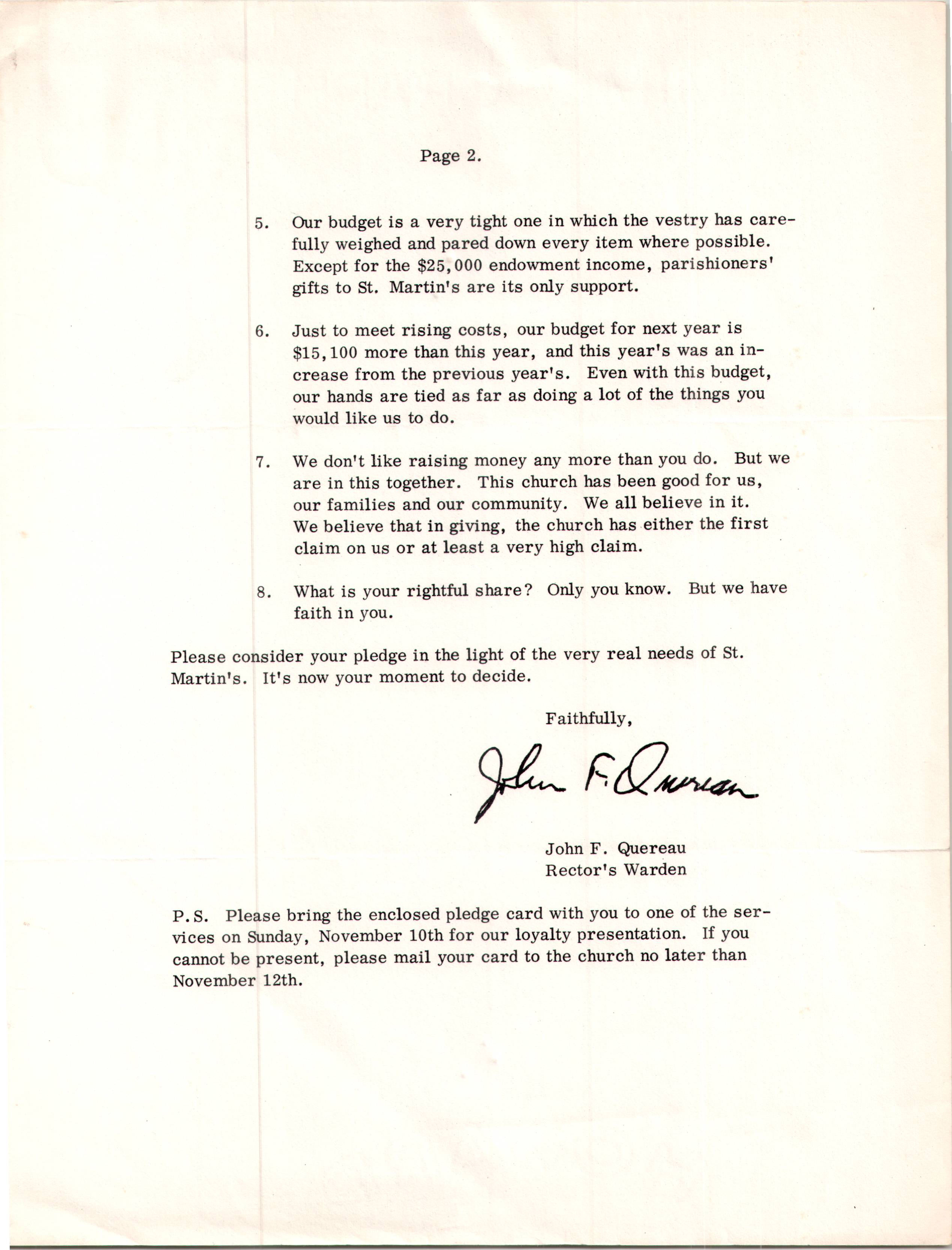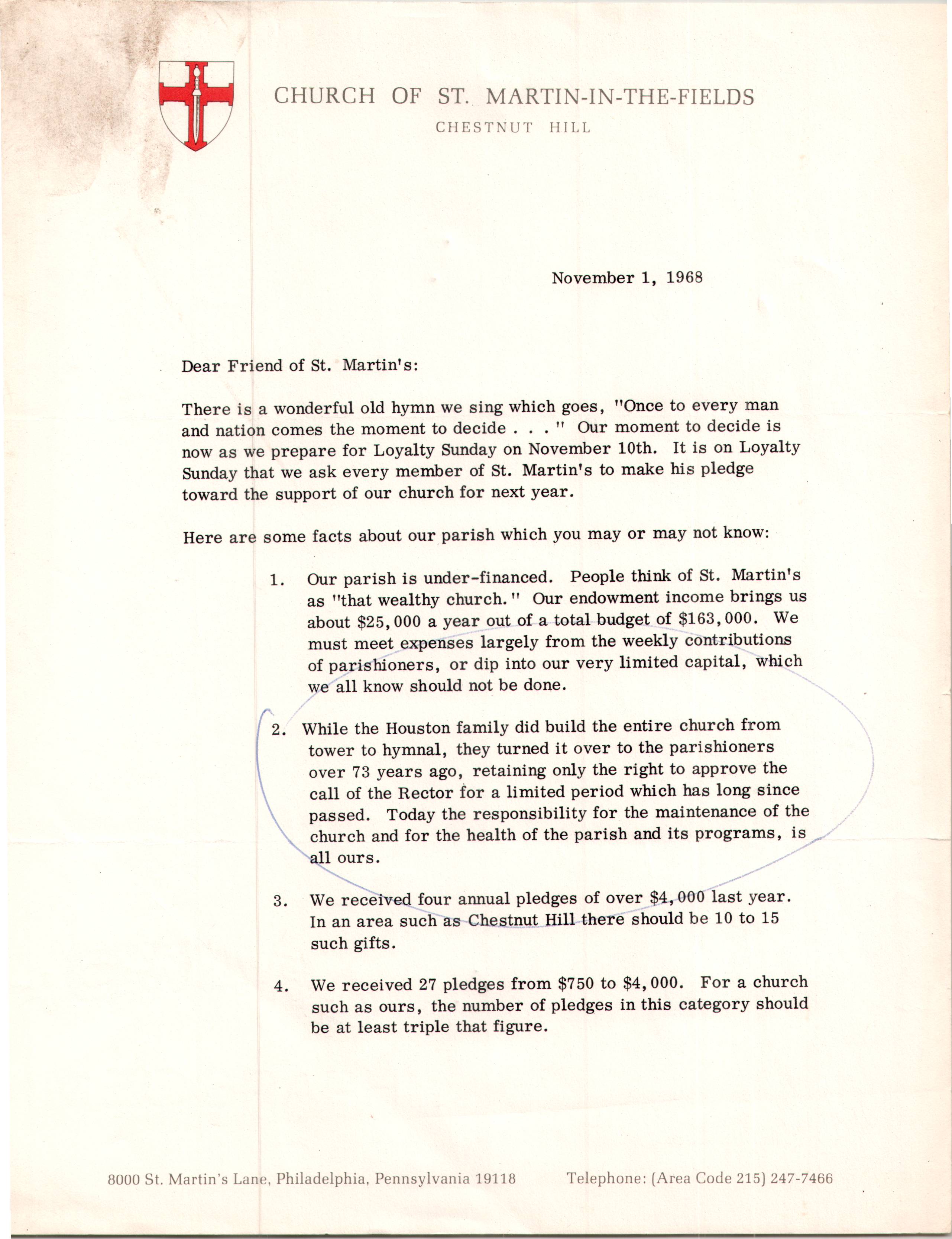 Stewardship Letter to the Friends of St. Martin’s in-the-Fields for 1969 (1968)