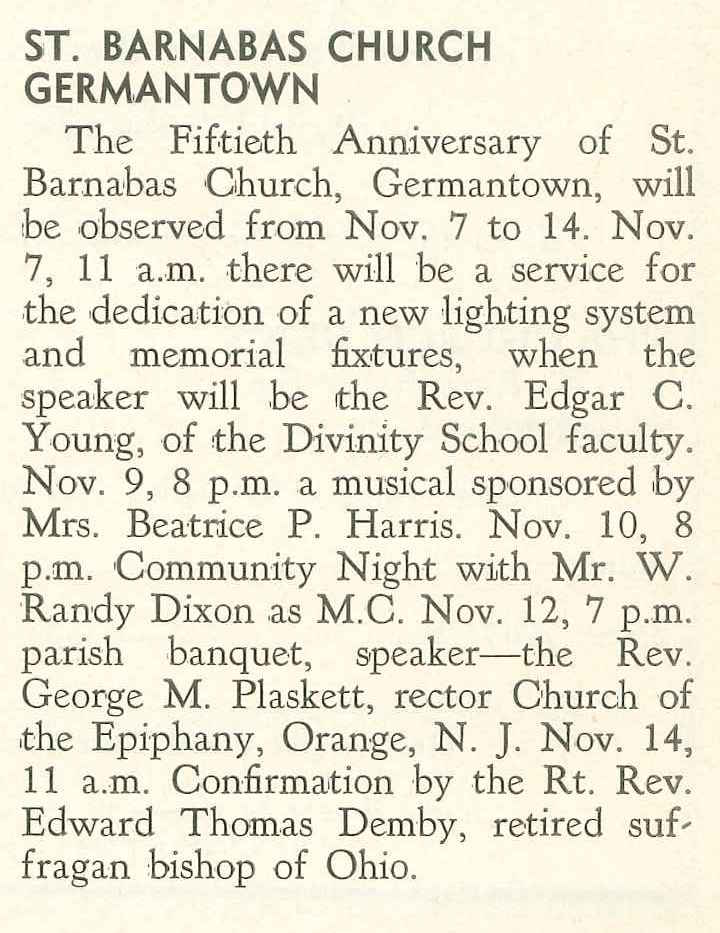 From the November 1954 Church News of the Diocese of Pennsylvania