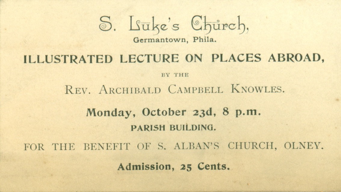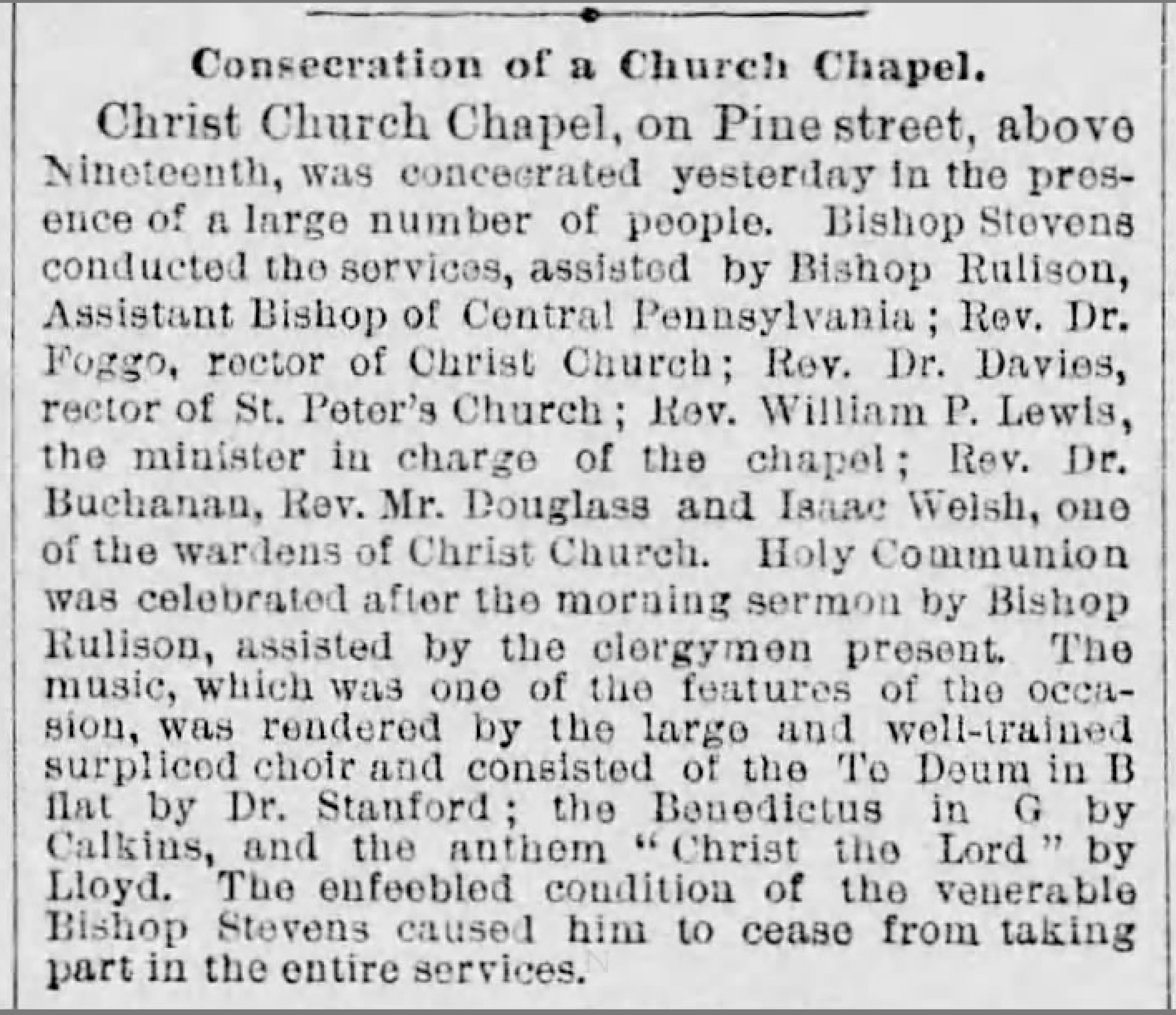 St. James’s Church, Philadelphia, Consecrated by Rt. Rev. Stevens (1880)