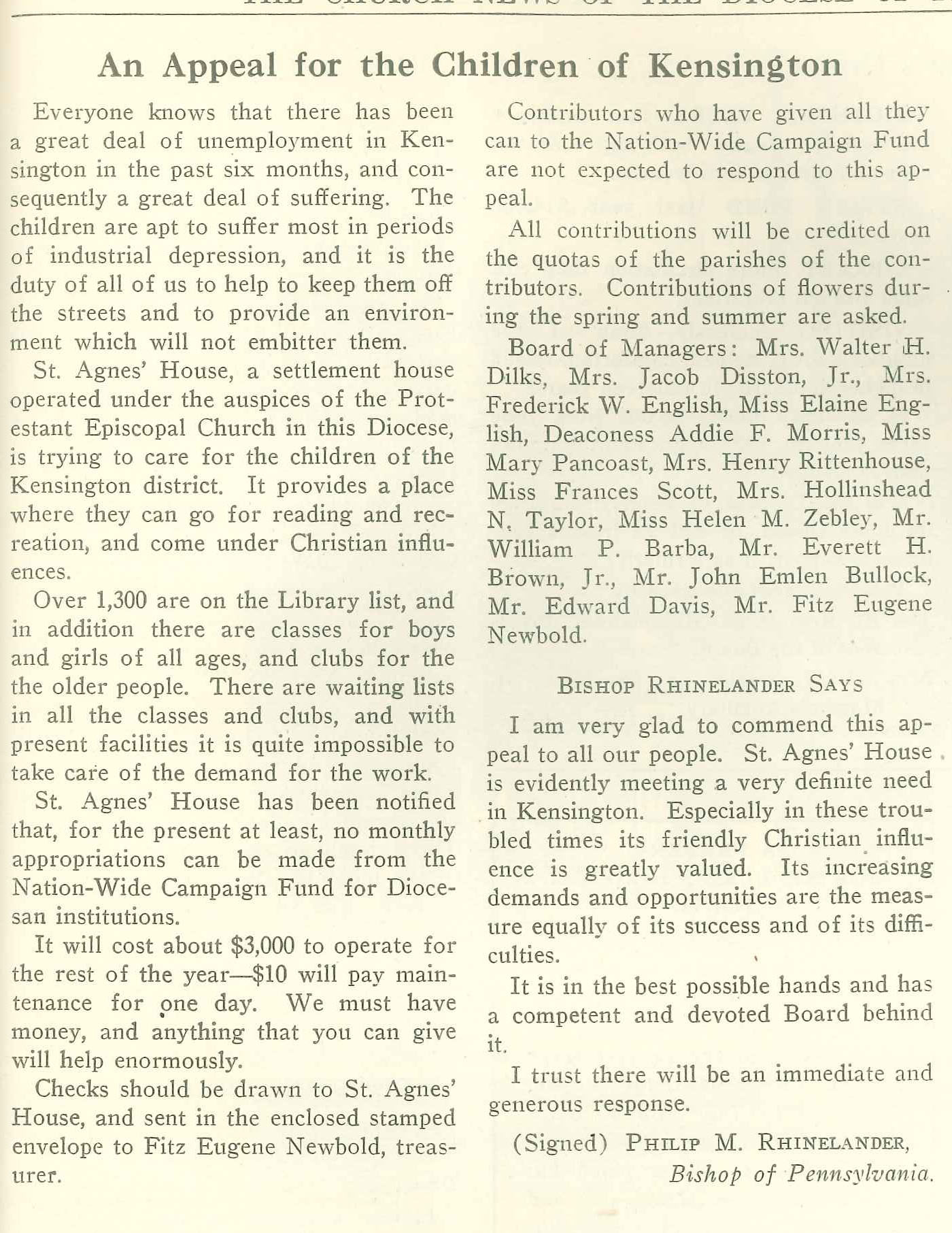 From the May 1921 Church News of the Diocese of Pennsylvania