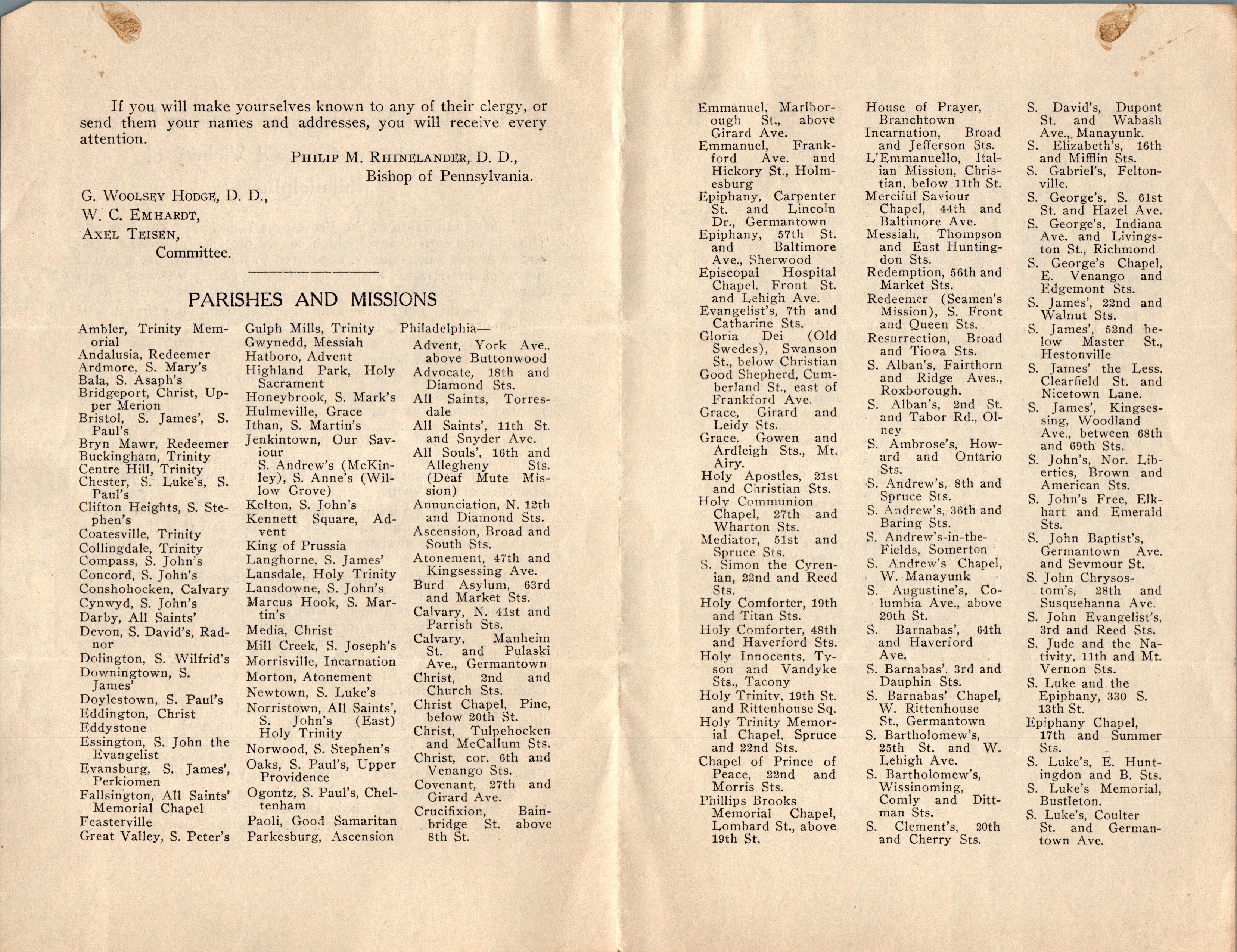 Report on White Missions of the Diocese of Pennsylvania (1938)