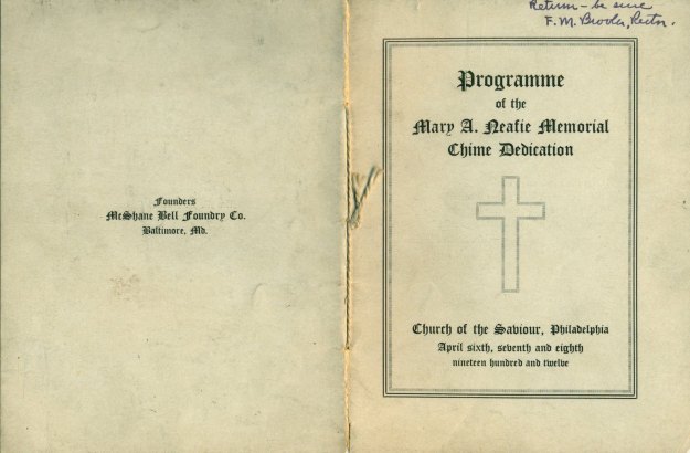 Programme of the Mary A. Neafie Memorial Chime Dedication at Church of the Saviour, West Philadelphia (1912)