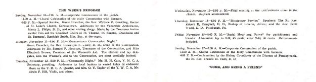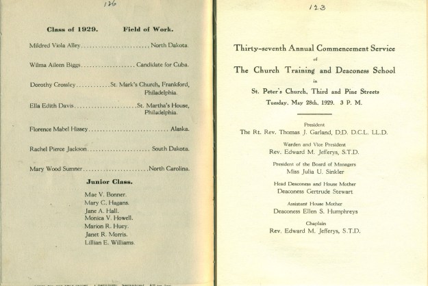 Leaflet for Annual Commencement Service of the Church Training and Deaconess School at St. Peter’s Church, Philadelphia, 1929, 1933, 1936, and 1938