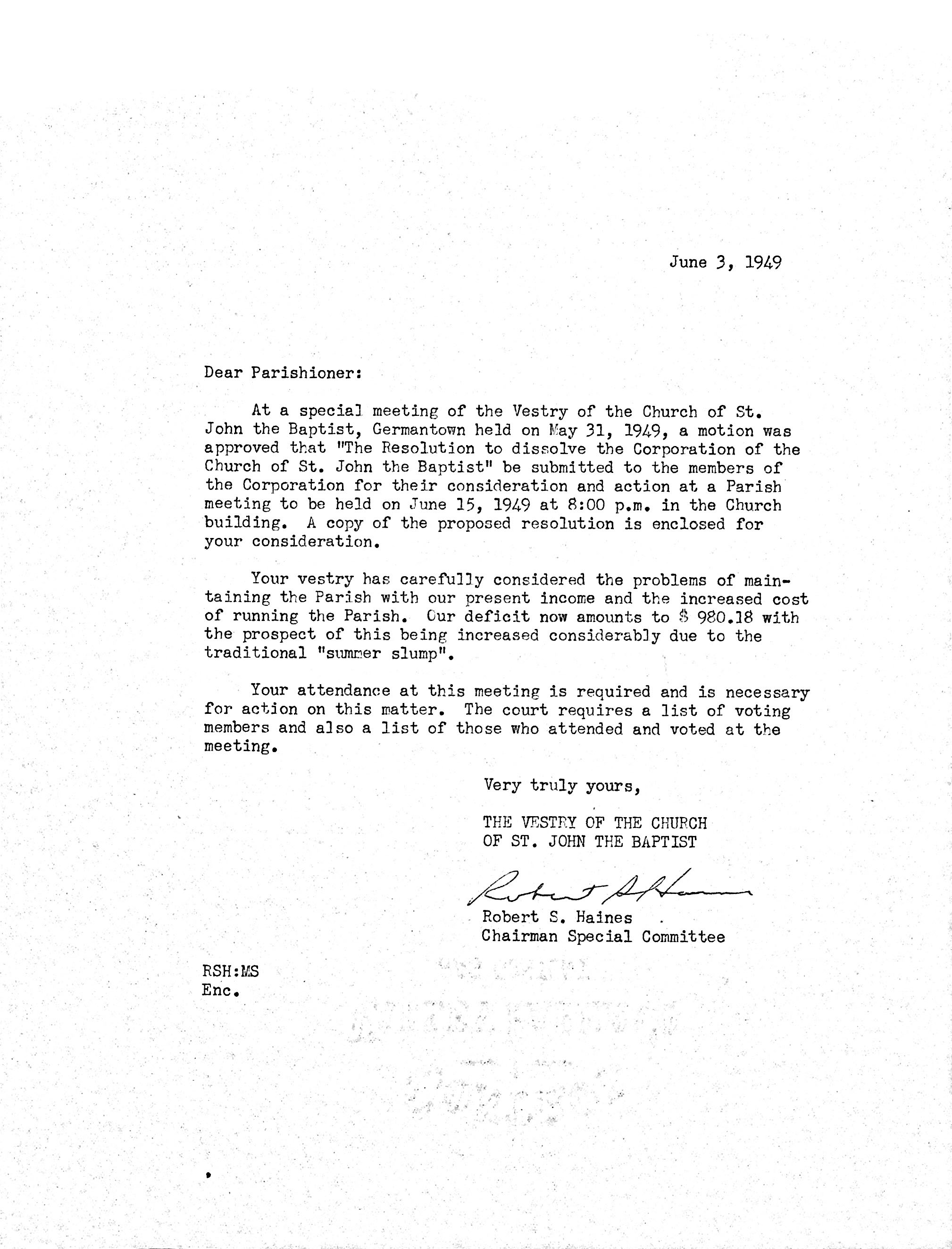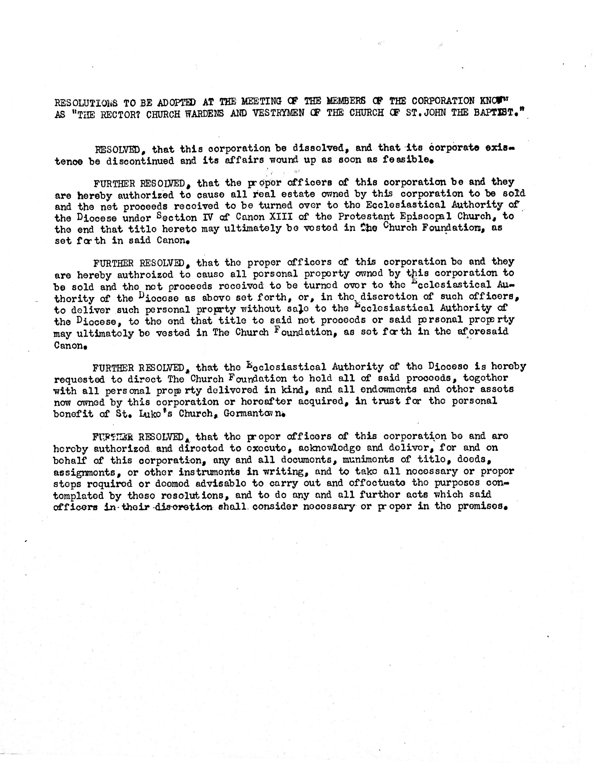 Can anyone tell me what the street location was for the Church of St. John the Baptist, Germantown?