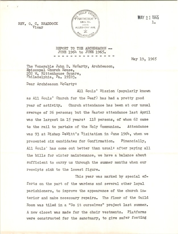 From the Archives of the Diocese of Pennsylvania. Click on the image to access the report.