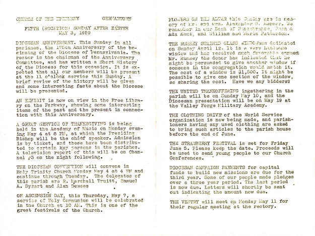 Bulletin for the First Sunday after Easter at Church of the Epiphany, Germantown (1959)
