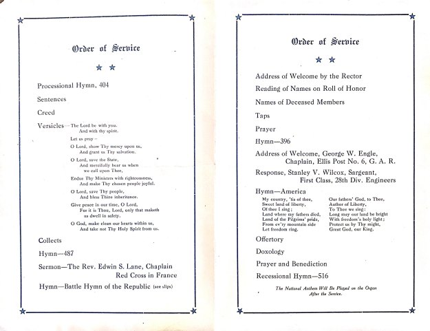Leaflet for the Welcome Home Service to Our Enlisted Men at Christ Church, Germantown (1919)