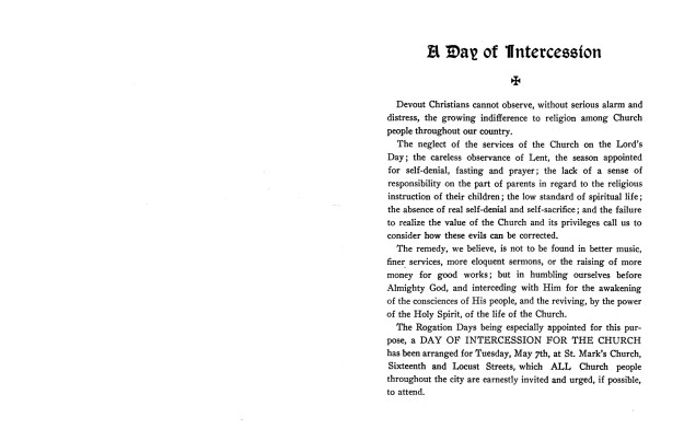 Program for the Diocesan Day of Intercession at St. Mark’s Church, Philadelphia: 1907-1909,1913-1917, 1920-1923