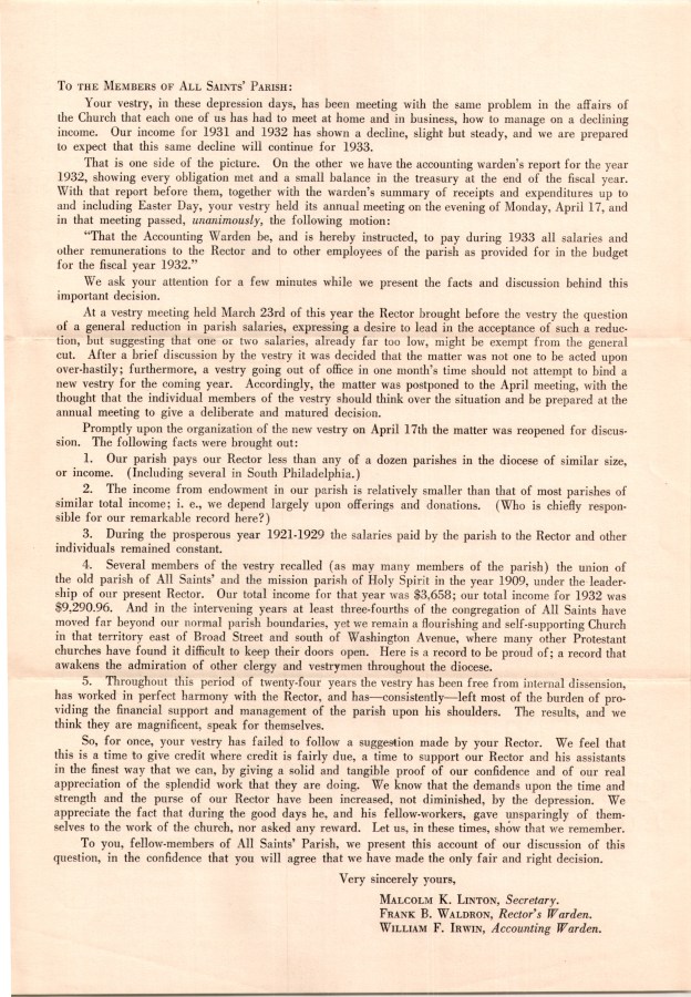 From the Archives of the Diocese of Pennsylvania