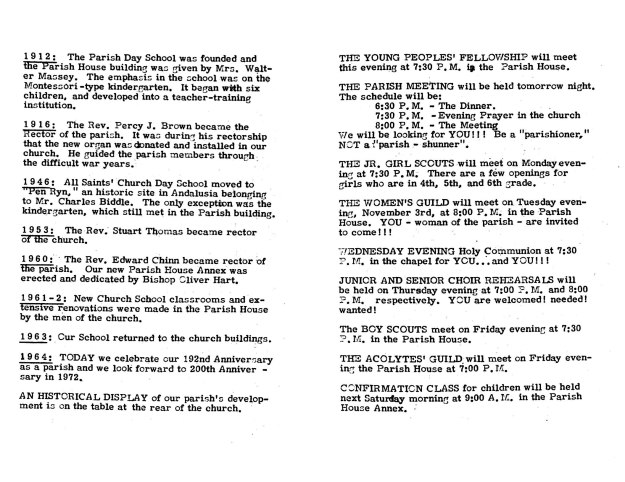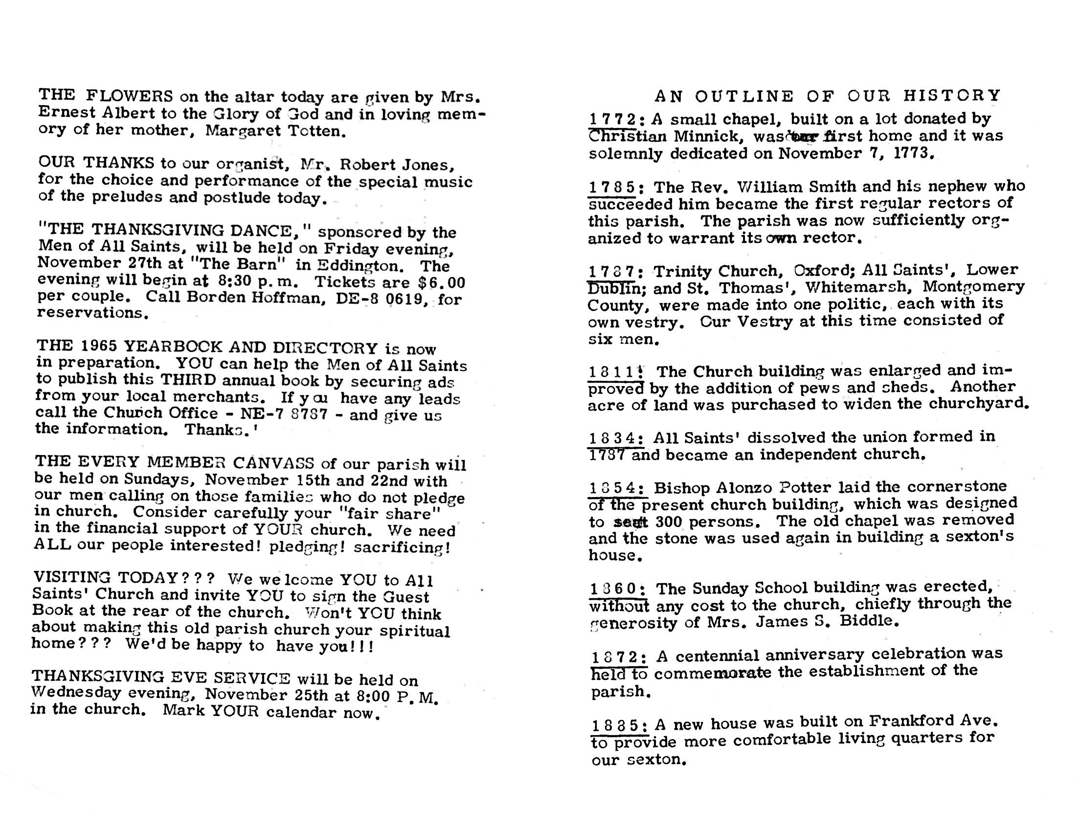 “The self-study has been started in the fall of 1963, carried out by the Division of Research and Field Study of the Executive Council of the Episcopal Church in New York. It was completed a year later. By the fall of 1965, the data had been organized and analyzed, and the results were ready to be reported and discussed…..The self-study was about people rather than property or finances, though the need for money is evident in the report. In many ways, the picture that emerged was one of which to be proud…The most depressing findings, however, had to do with the low state of morale and the weakness of the lines of communication among members of different parishes. Too many divisions existed. Race and class were the unspoken divides here. Lay leadership did not seem especially strong to the study group, nor were the Convocations, or regional groupings, very effective. Furthermore, the number of communicants were flat, while the population in the metropolitan area was growing.” – Sheldon Hackney, This Far By Faith: Tradition and Change in the Episcopal Diocese of Pennsylvania, pp. 308-309.