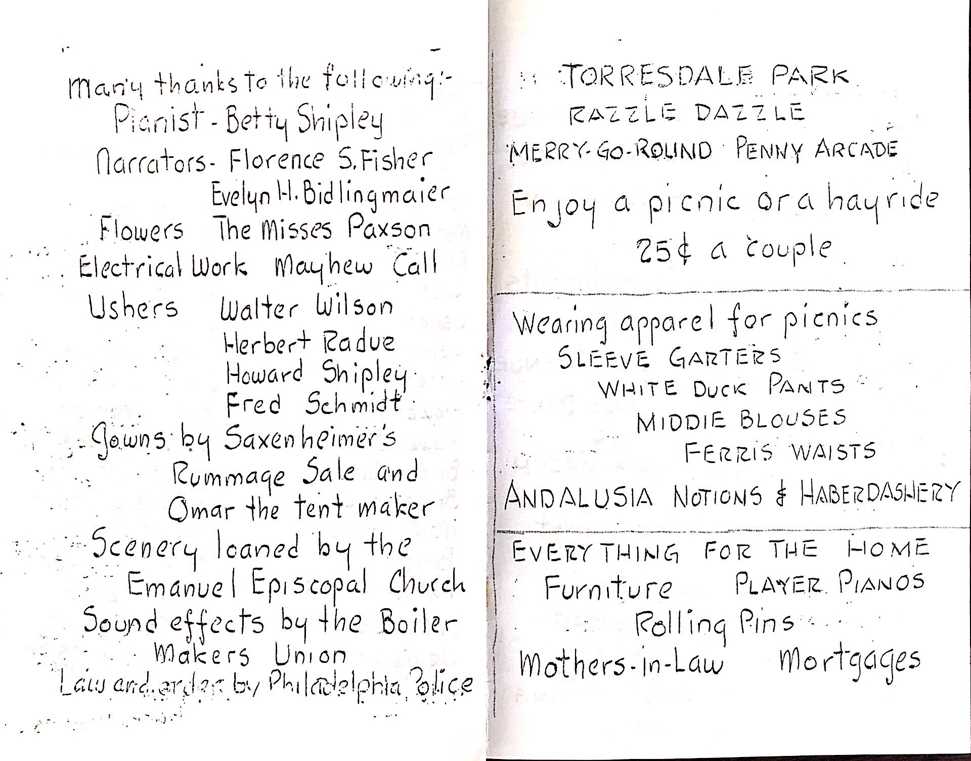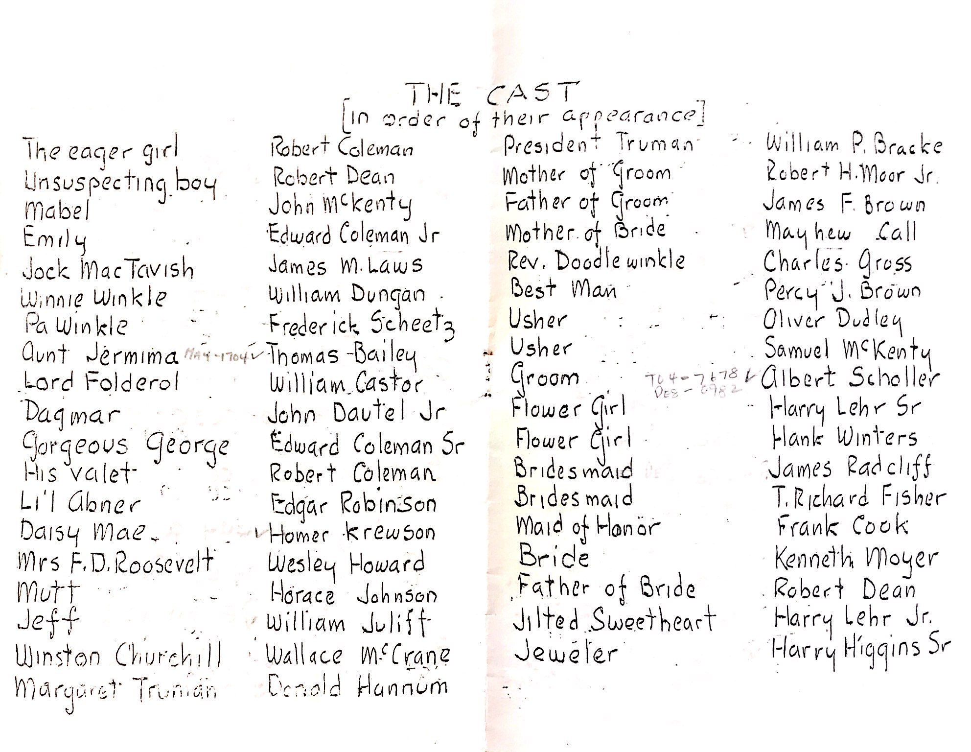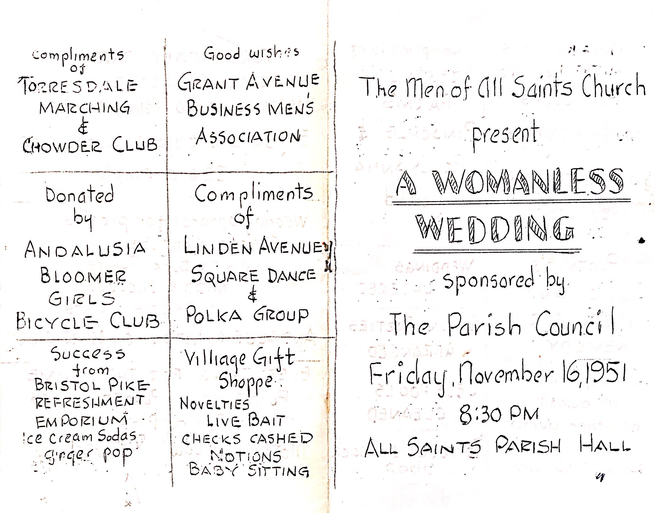 Program for the Men of All Saints’ Church, Torresdale, Production of A Womanless Wedding (1951)