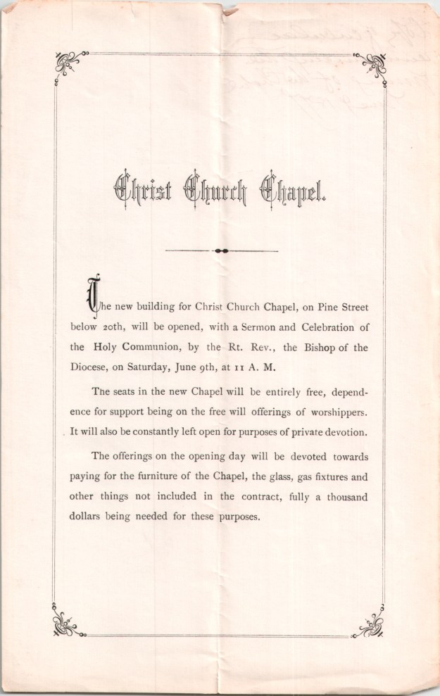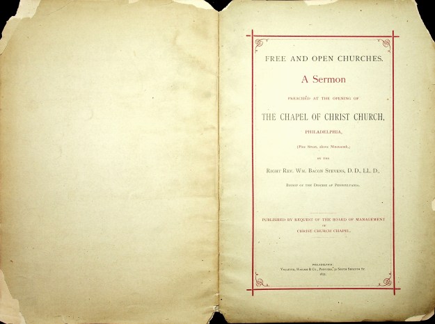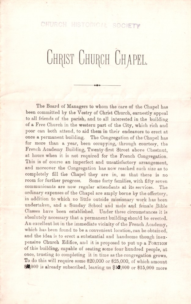 From the Archives of the Diocese of Pennsylvania. After a review of the 1879 Convention Journal, it is safe to conclude that the matter in question regarded proposed canons that arose from the Committee on St. Clement’s Church.