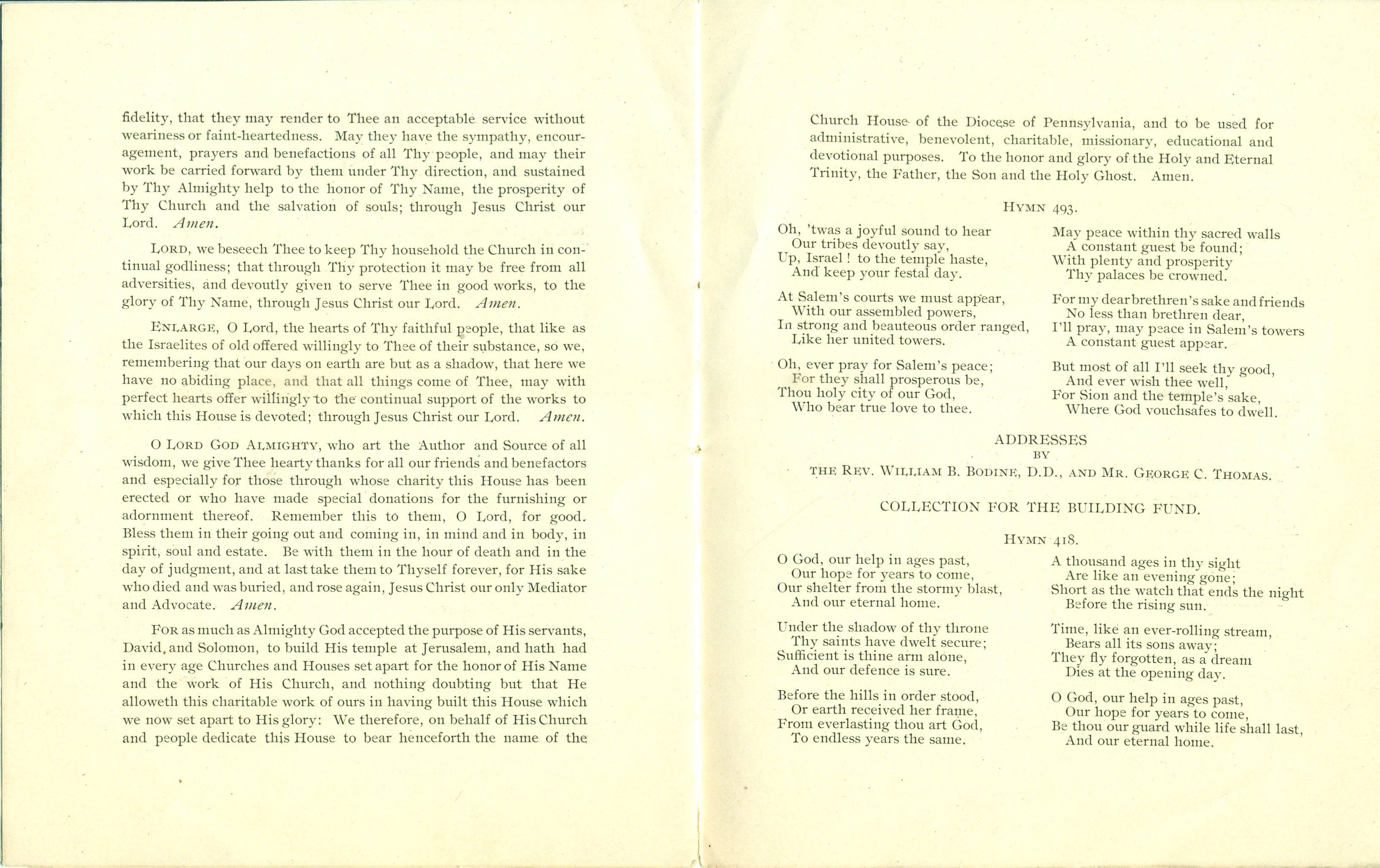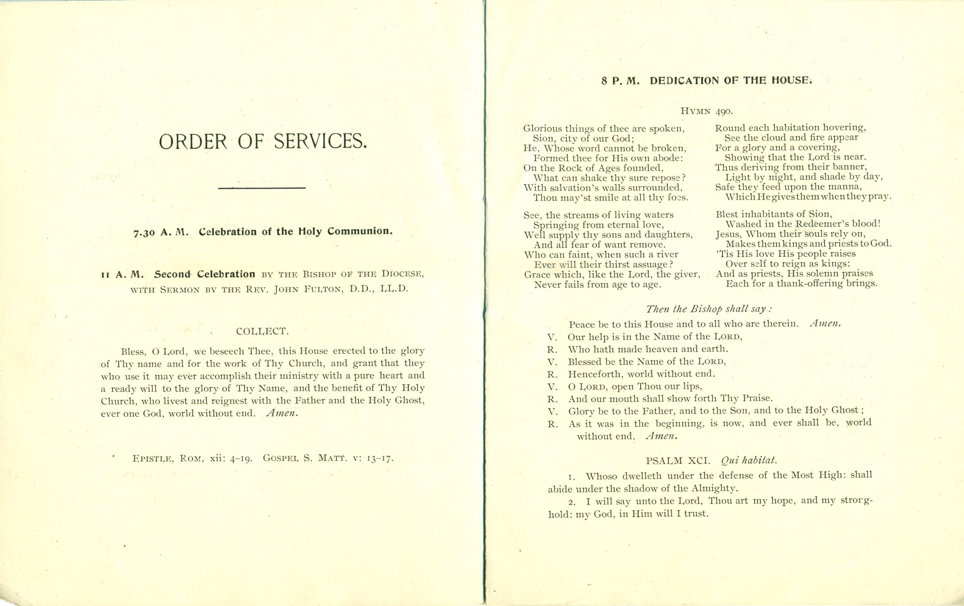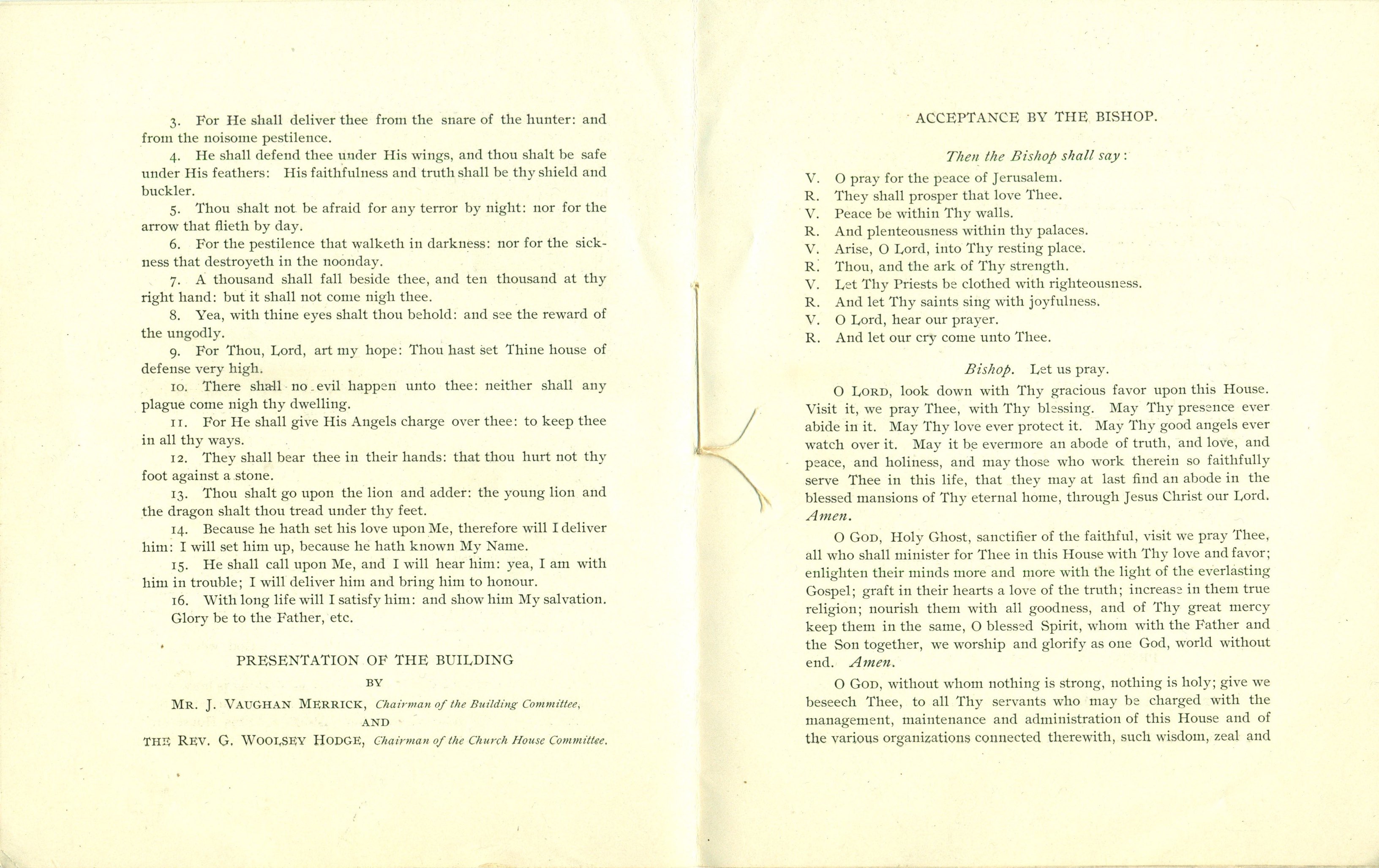 Leaflet for the Services for the Opening of the Church House of the Diocese of Pennsylvania (1895)