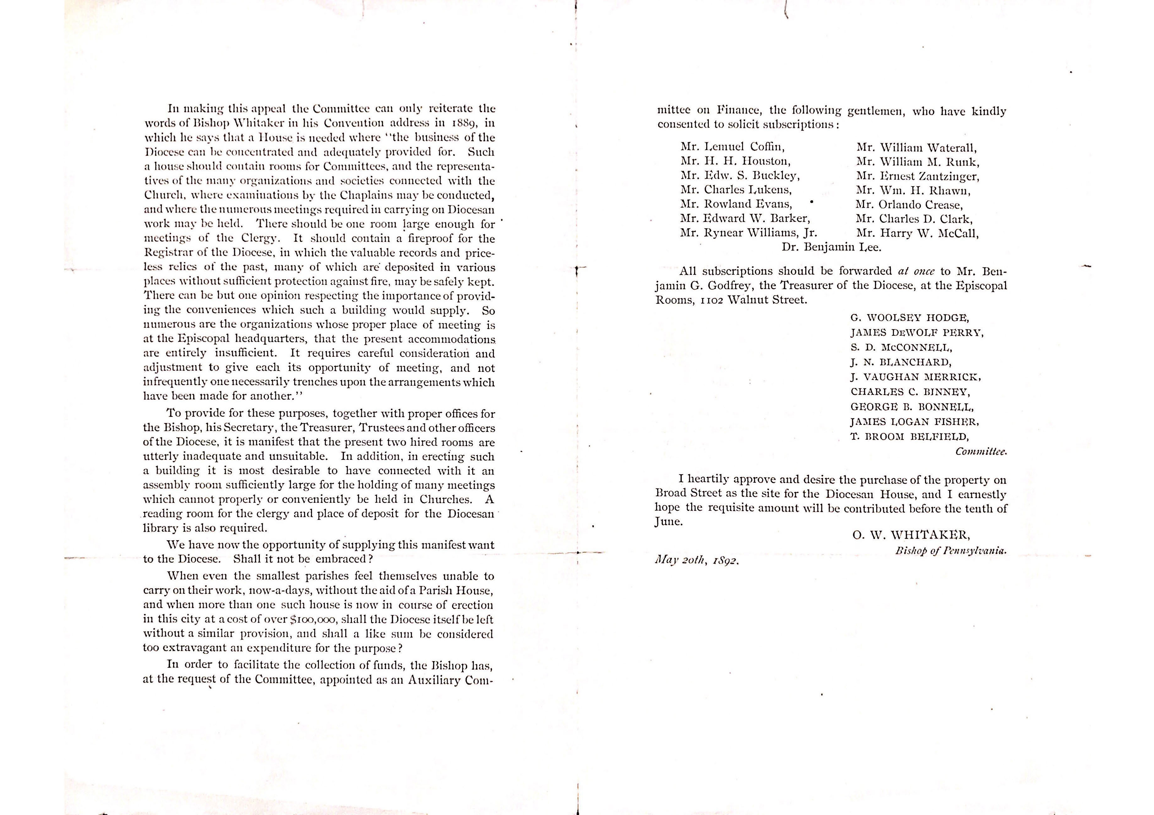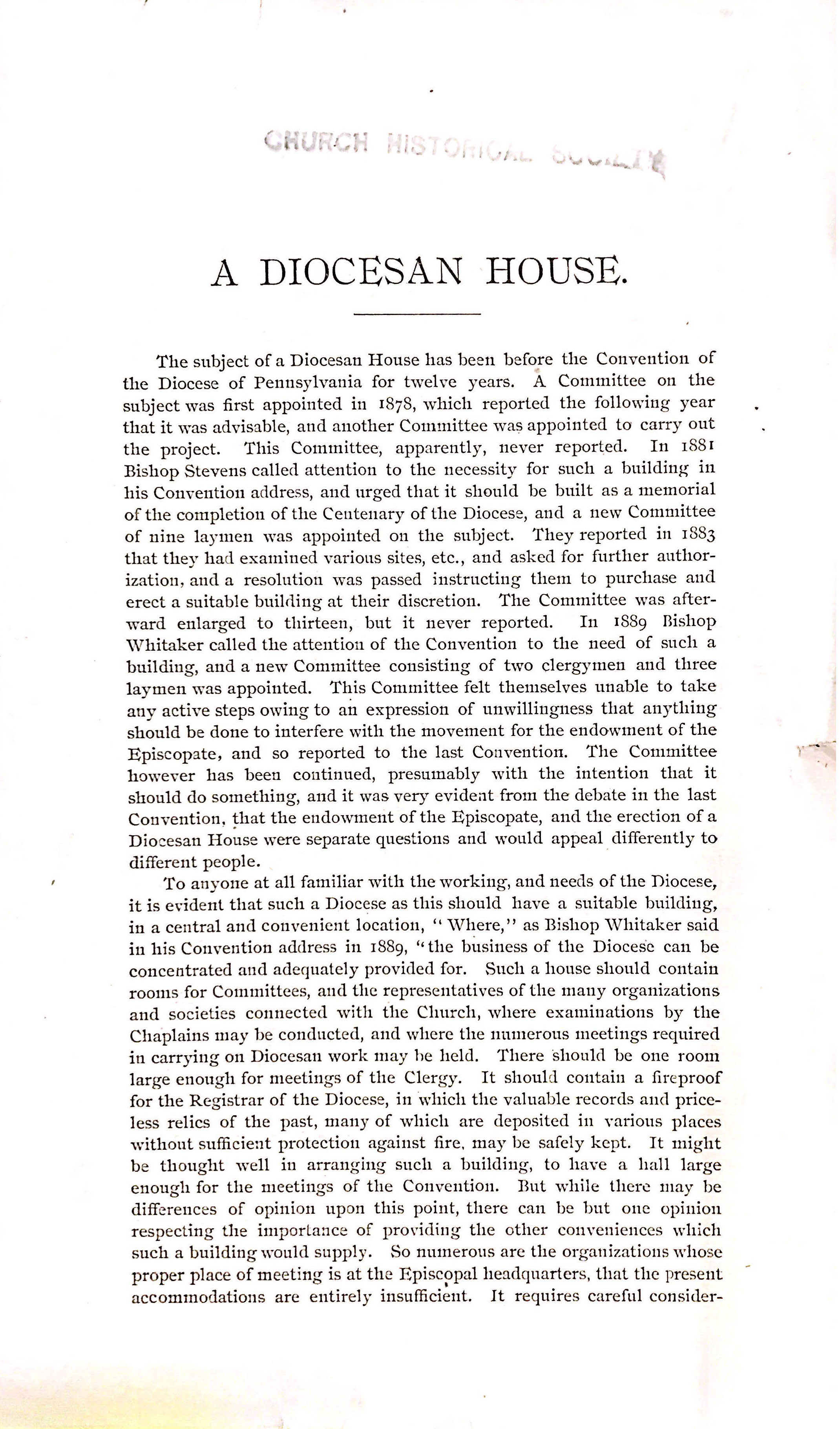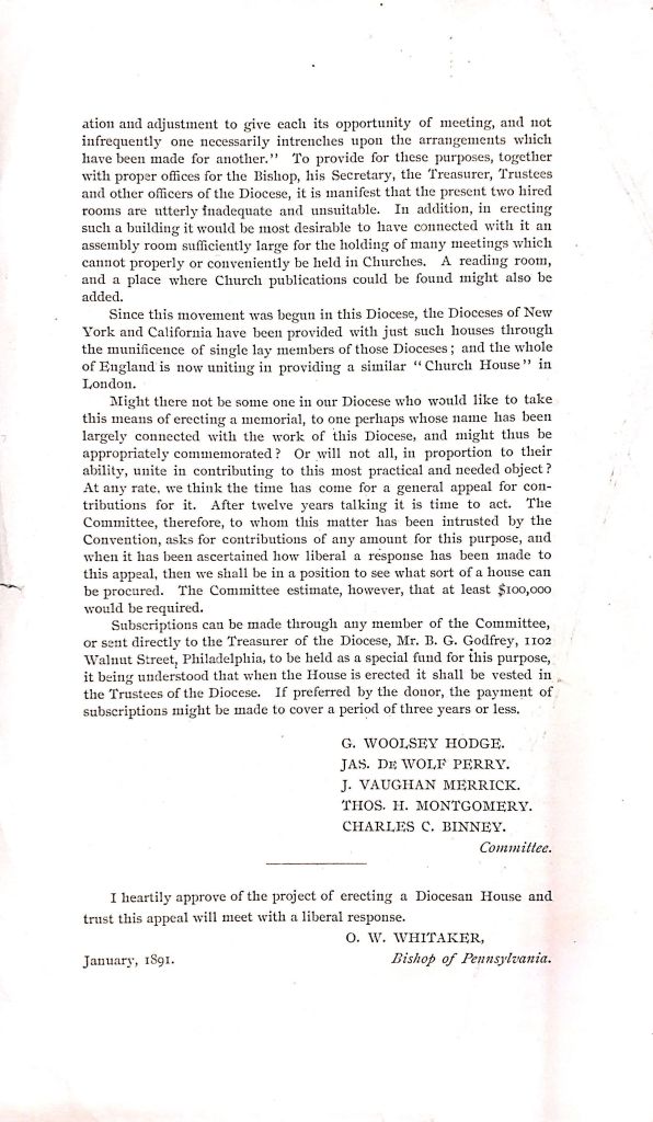 An Appeal for the Church House of the Diocese of Pennsylvania (1891)