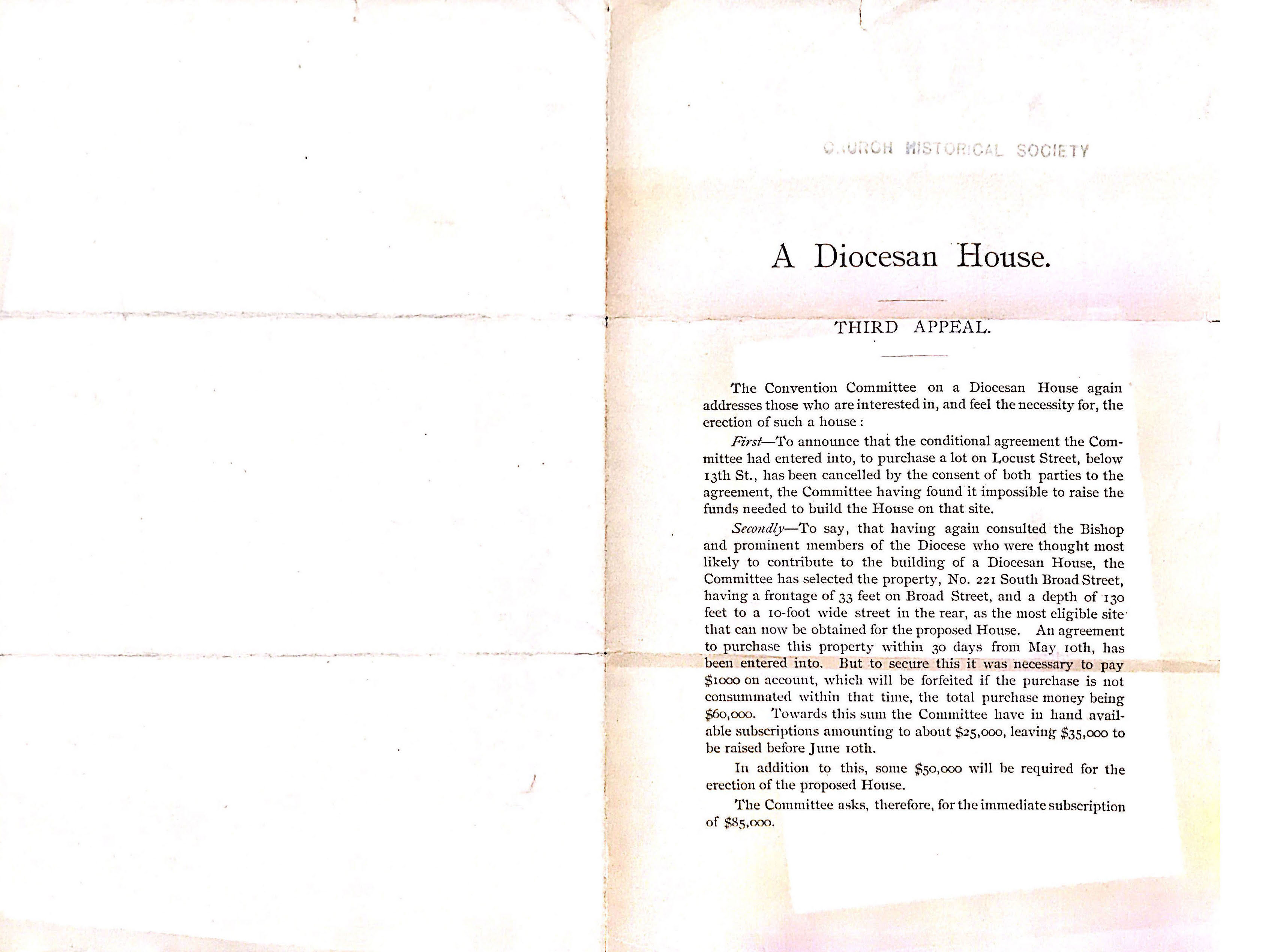 Third Appeal for the Church House of the Diocese of Pennsylvania (1892)