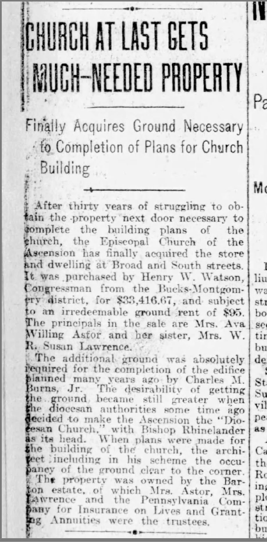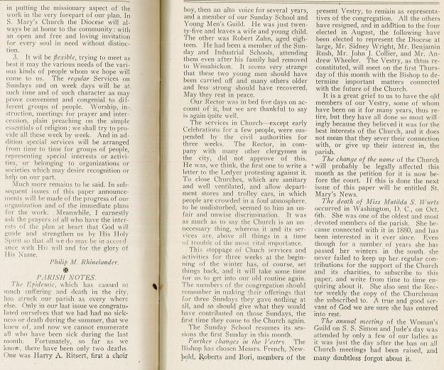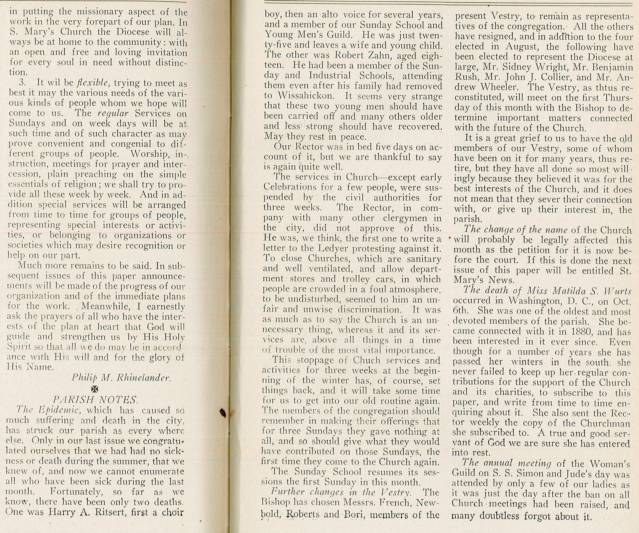 A Mention of the Influenza Epidemic at Church of the Ascension, Philadelphia (1918)