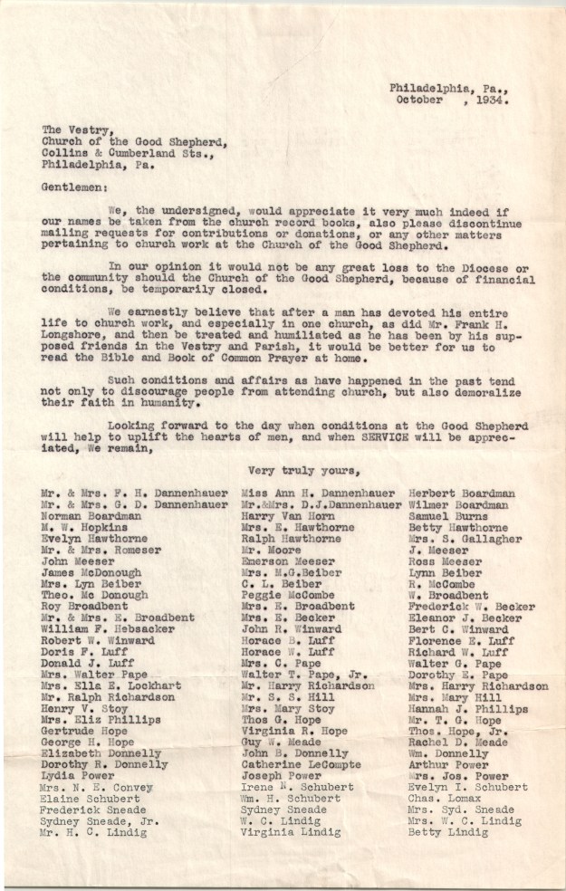 “The self-study has been started in the fall of 1963, carried out by the Division of Research and Field Study of the Executive Council of the Episcopal Church in New York. It was completed a year later. By the fall of 1965, the data had been organized and analyzed, and the results were ready to be reported and discussed…..The self-study was about people rather than property or finances, though the need for money is evident in the report. In many ways, the picture that emerged was one of which to be proud…The most depressing findings, however, had to do with the low state of morale and the weakness of the lines of communication among members of different parishes. Too many divisions existed. Race and class were the unspoken divides here. Lay leadership did not seem especially strong to the study group, nor were the Convocations, or regional groupings, very effective. Furthermore, the number of communicants were flat, while the population in the metropolitan area was growing.” – Sheldon Hackney, This Far By Faith: Tradition and Change in the Episcopal Diocese of Pennsylvania, pp. 308-309.