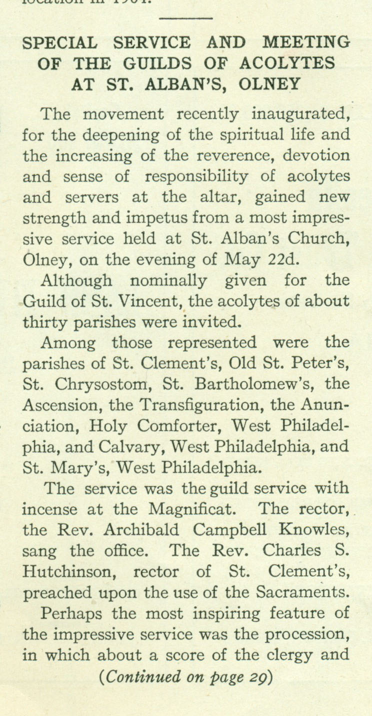 Special Service and Meeting of the Guilds of Acolytes at St. Alban’s Church, Olney (1913)