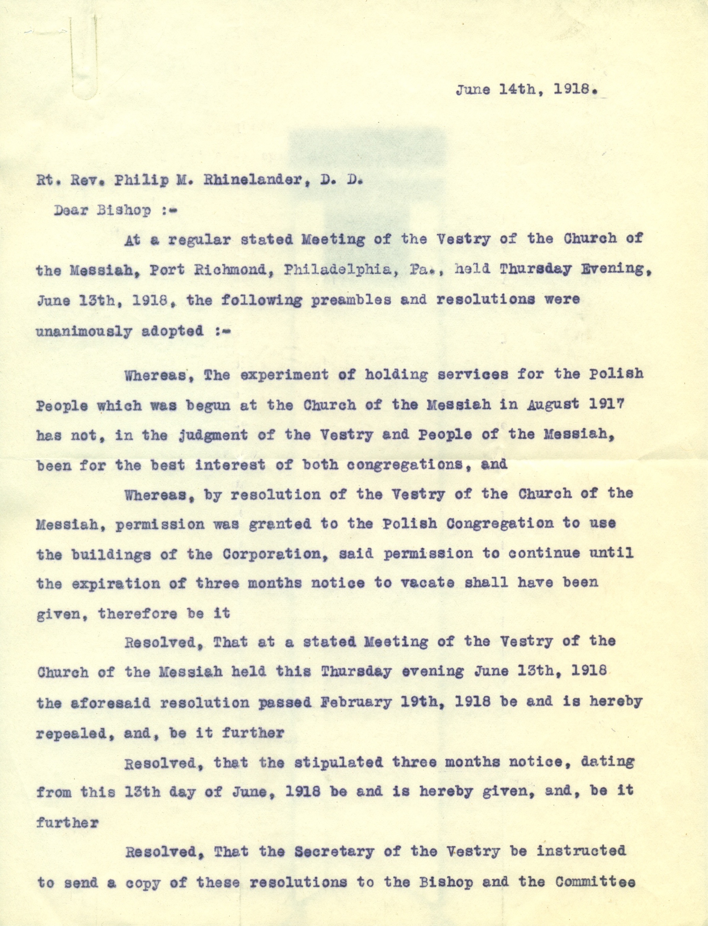 From the Archives of the Diocese of Pennsylvania