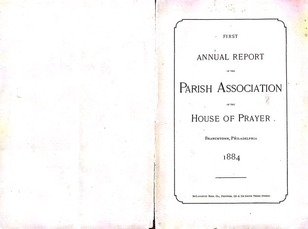 First Annual Report of the Parish Association of the House of Prayer, Branchtown (1884)