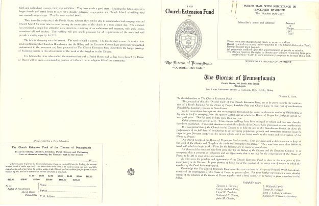 Report of the Bishop’s Bricks Fund, Diocese of Pennsylvania: 1912-1916, 1918-1924, and 1927