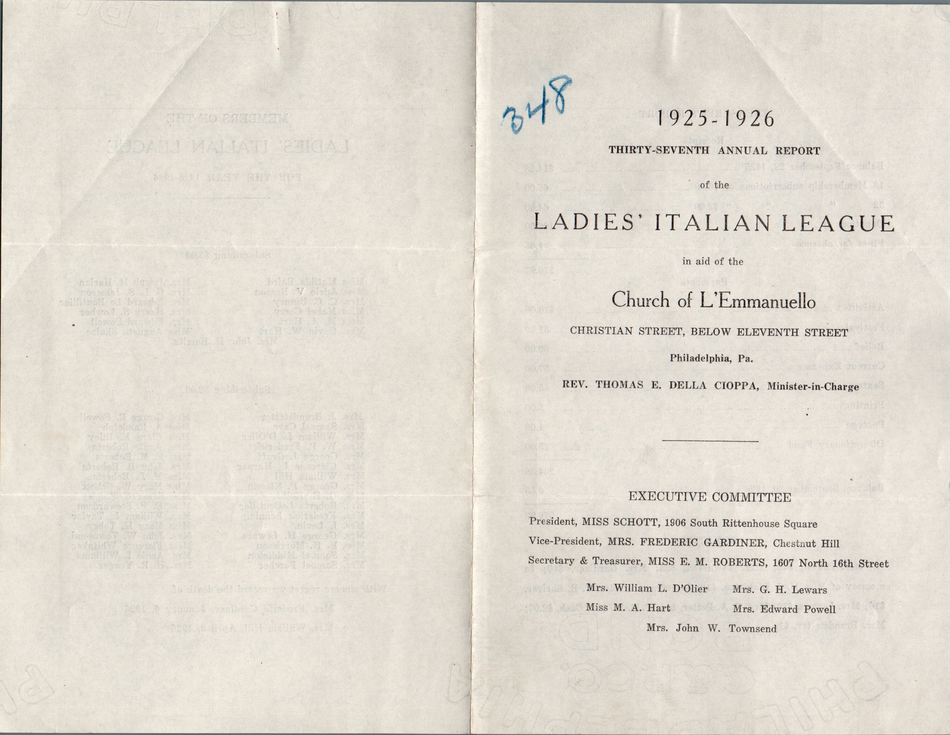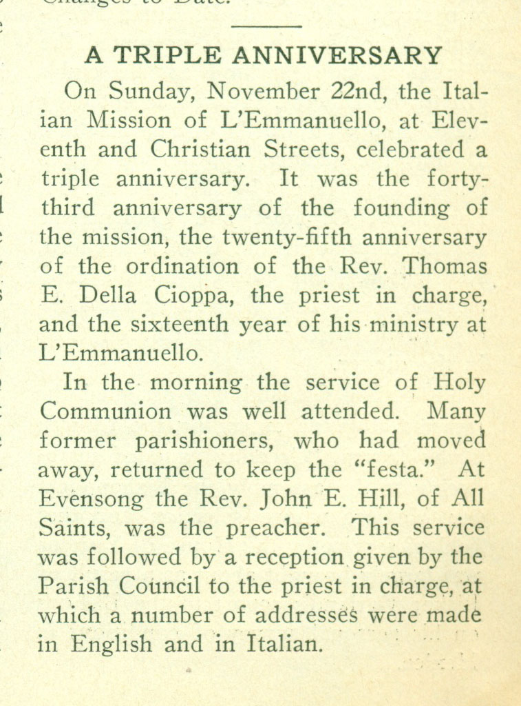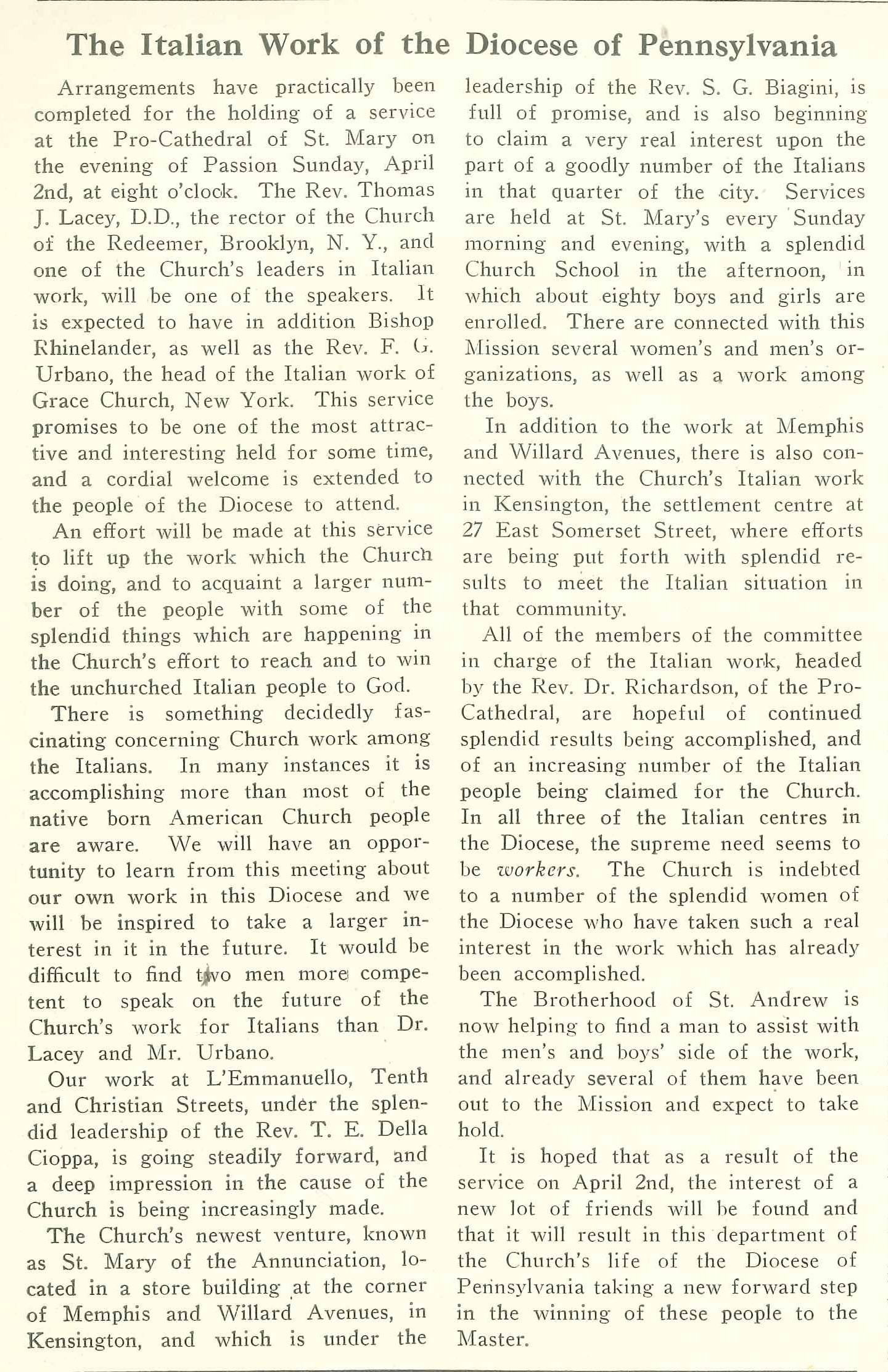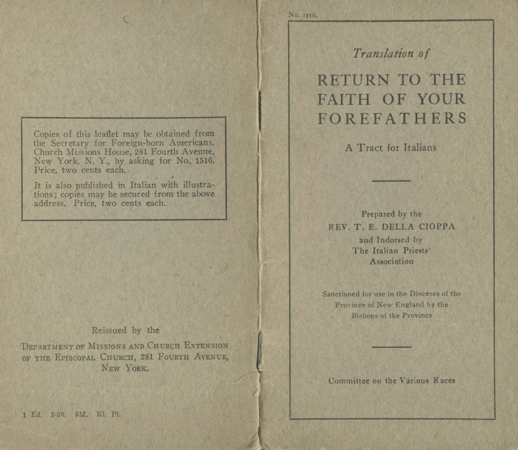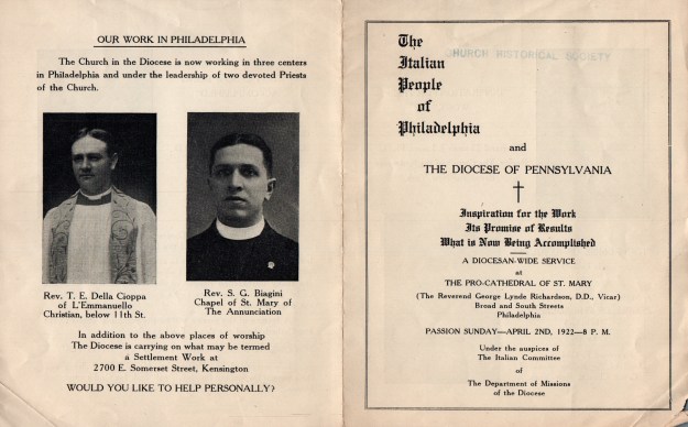 Program for The Italian People of Philadelphia and the Diocese of Pennsylvania: Inspiration for the Work, Its Promise of Results, and What is Now Being Accomplished (1922)