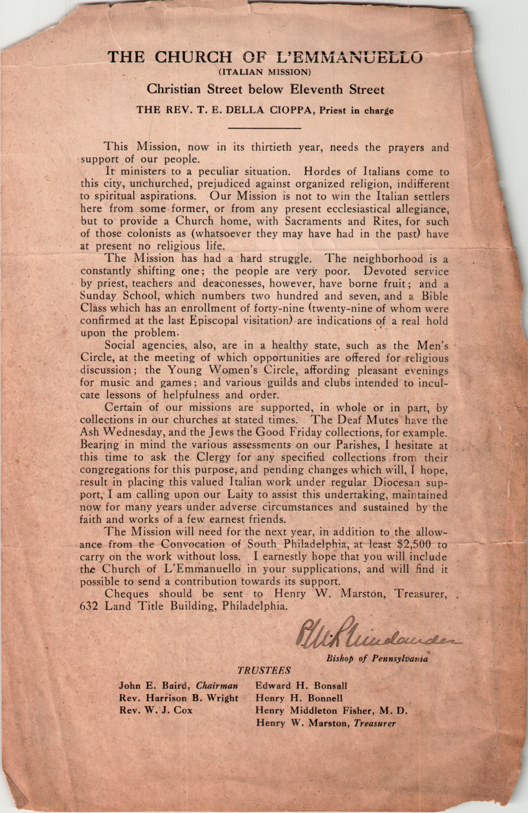 From the Archives of the Diocese of Pennsylvania