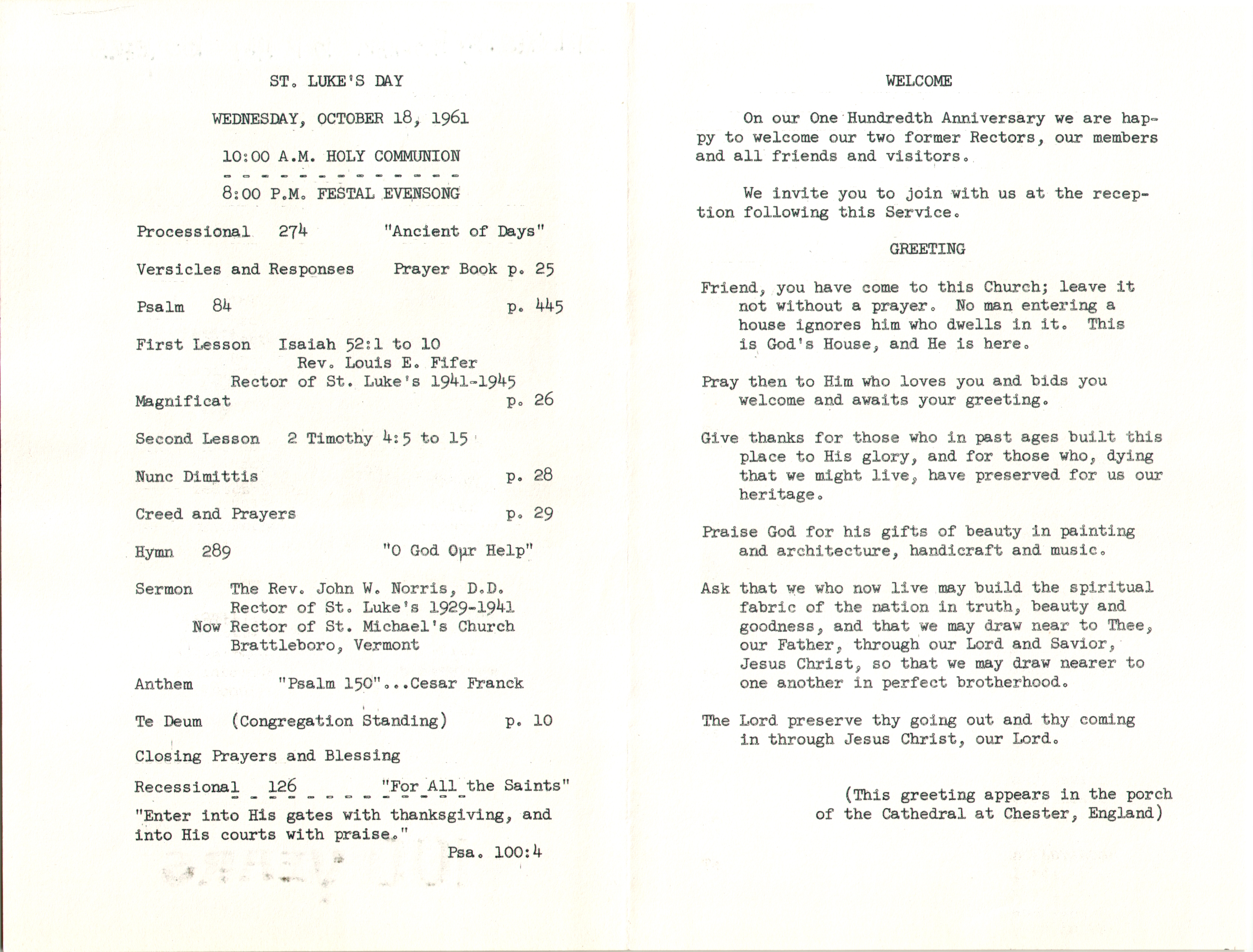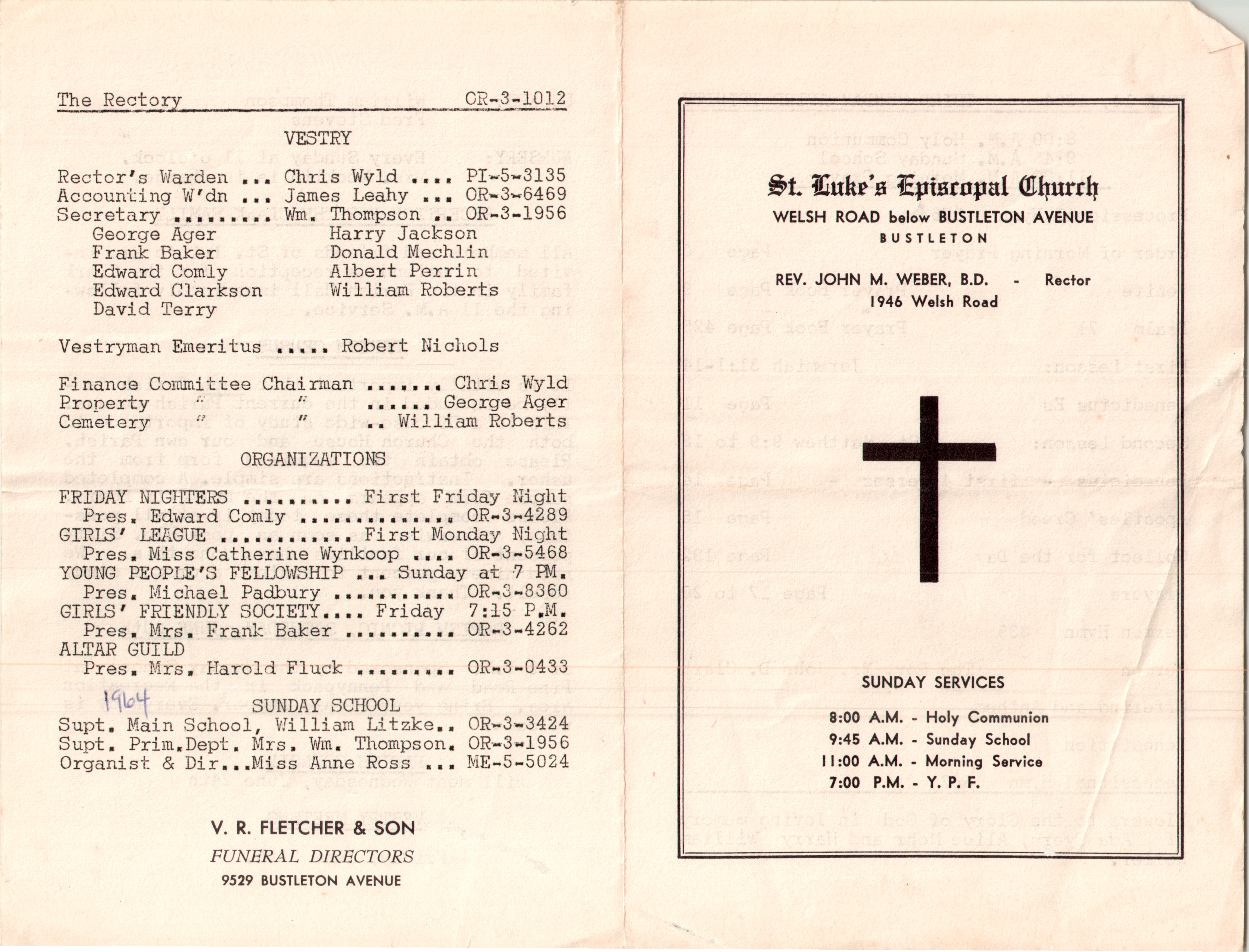 Seventy-Fifth Anniversary Program of the Memorial Church of St. Luke the Beloved Physician, Bustleton (1936)