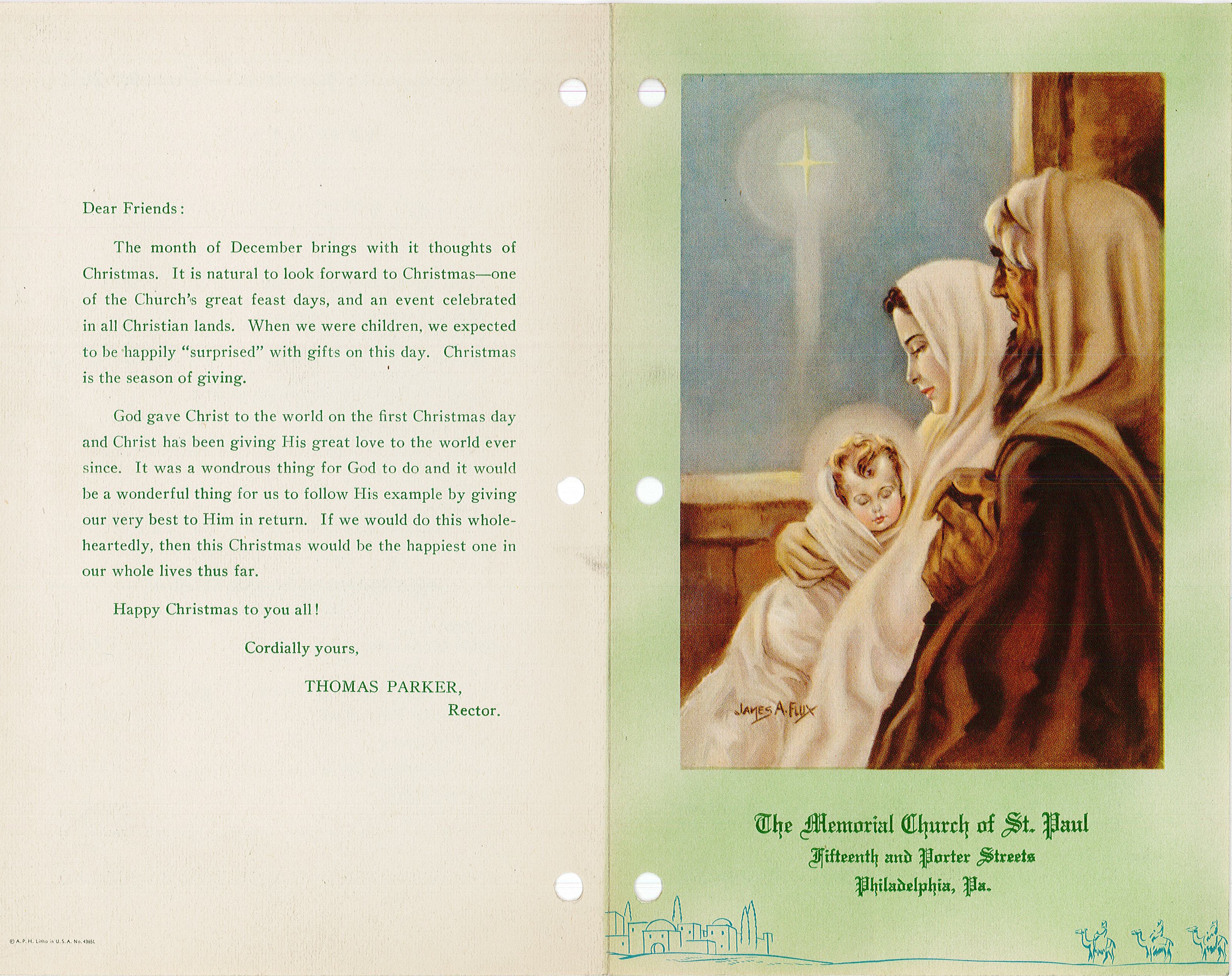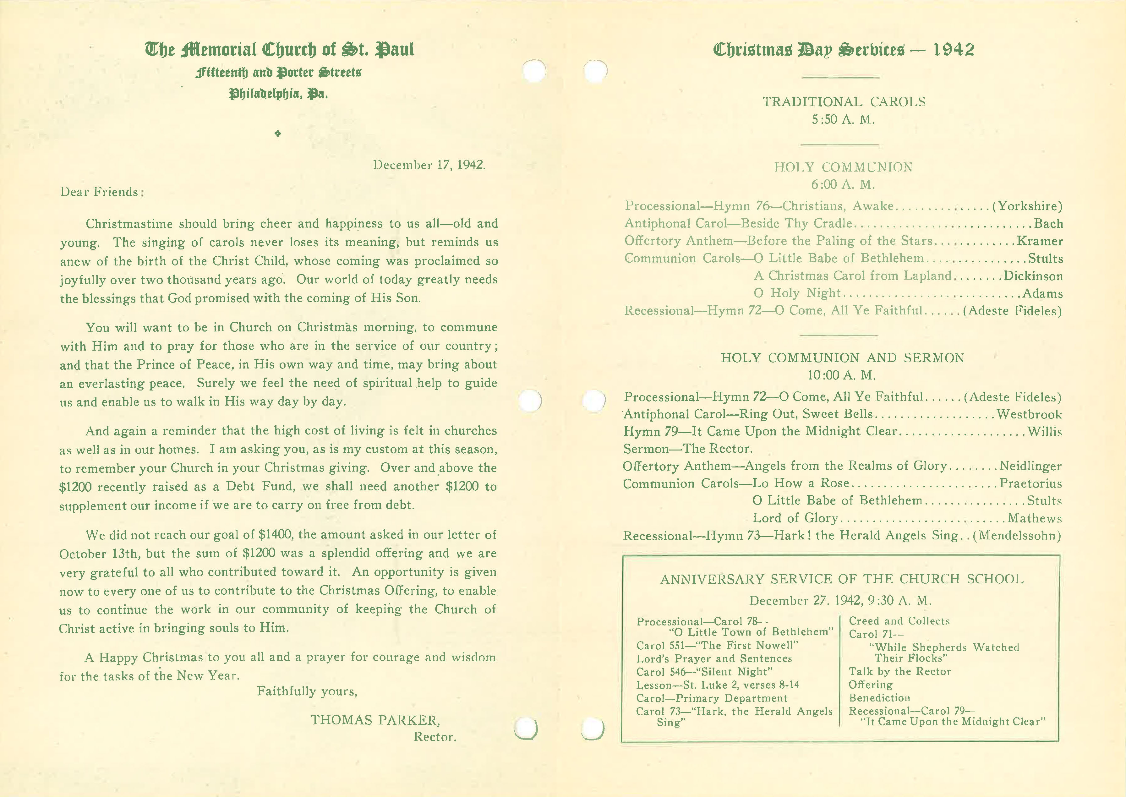 Service Leaflet for Christmas Day at Memorial Church of St. Paul, South Philadelphia (1942)