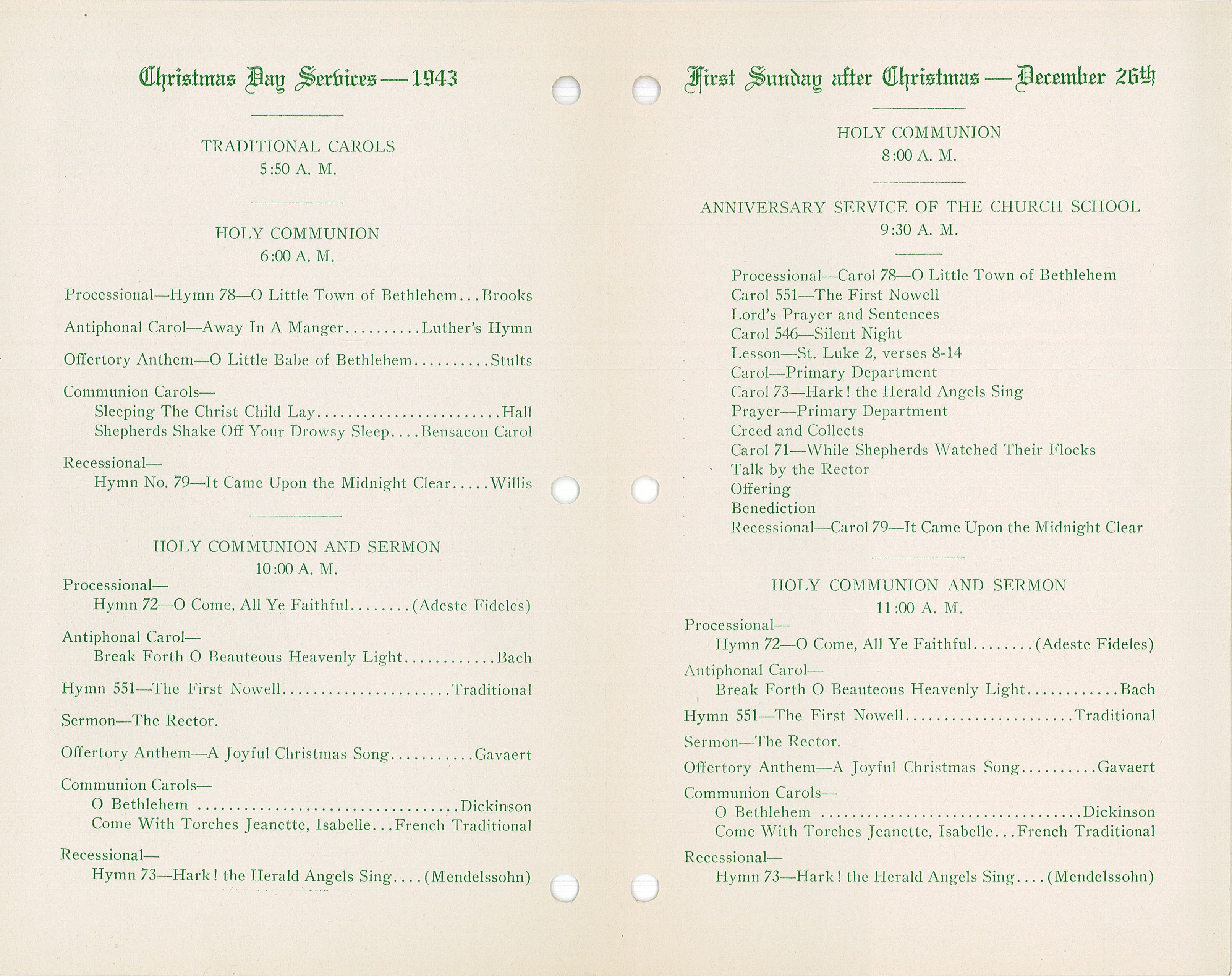 Service Leaflet for Christmas Day and the First Sunday after Christmas at the Memorial Church of St. Paul, South Philadelphia (1943)