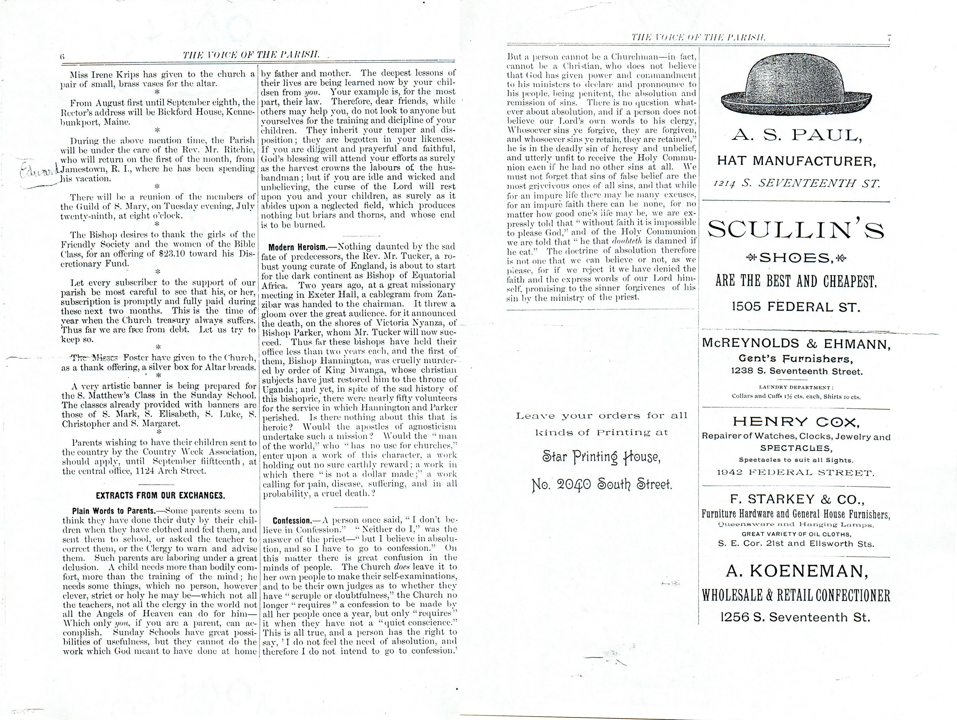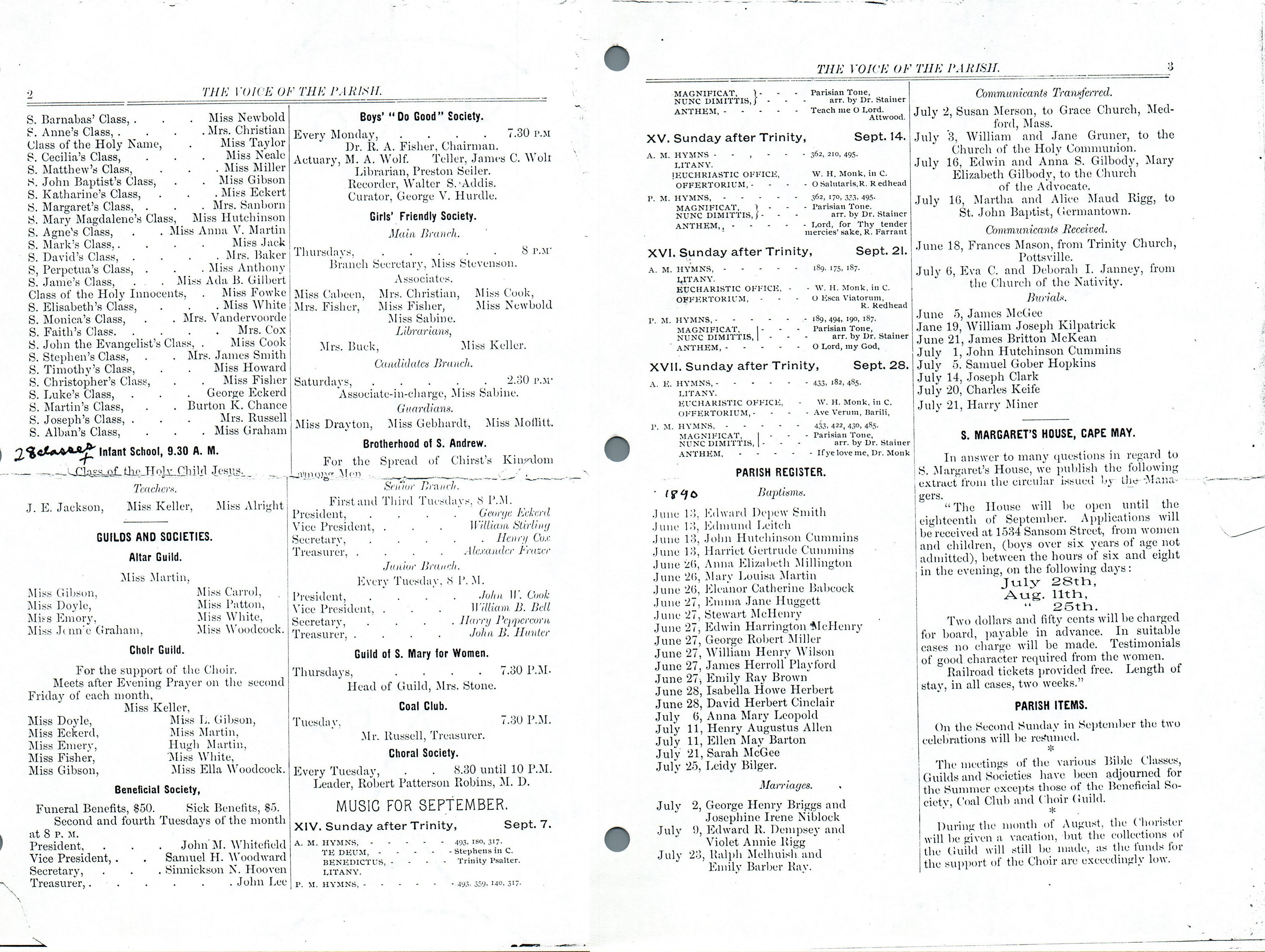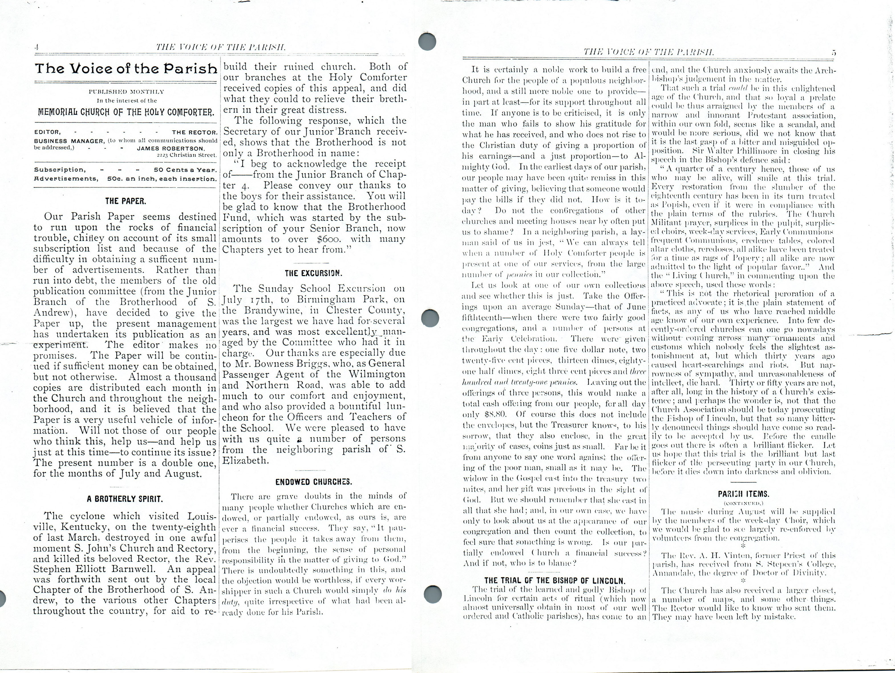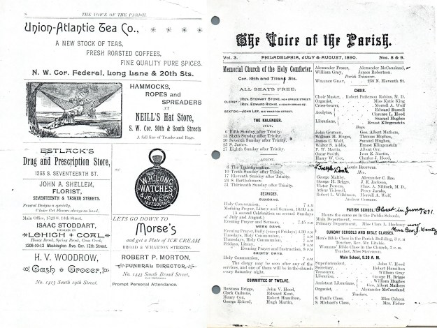 The Voice of the Parish of the Memorial Church of the Holy Comforter, South Philadelphia: July & August 1890