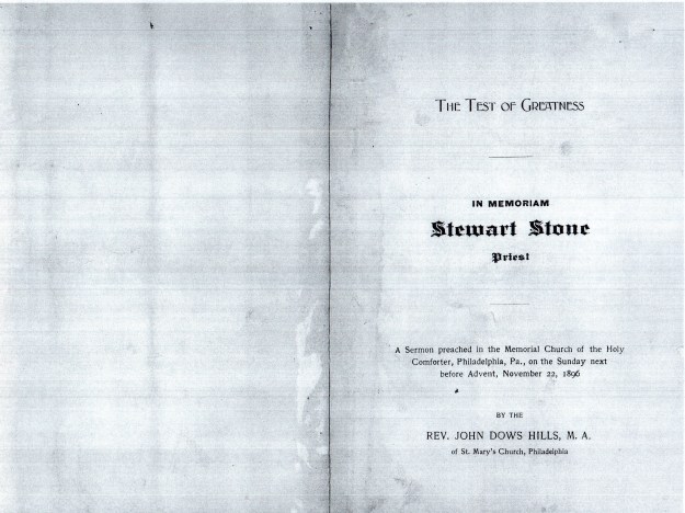 The Test of Greatness: A Sermon Preached in Memoriam to Rev. Stewart Stone at Memorial Church of the Holy Comforter, South Philadelphia (1896)