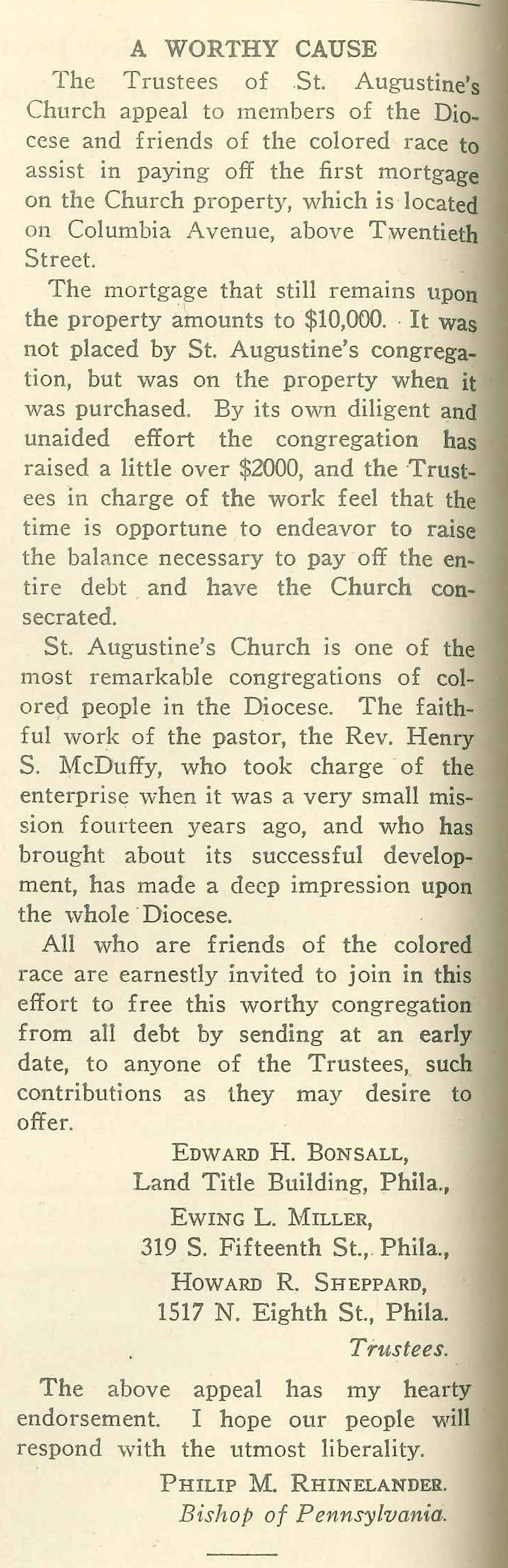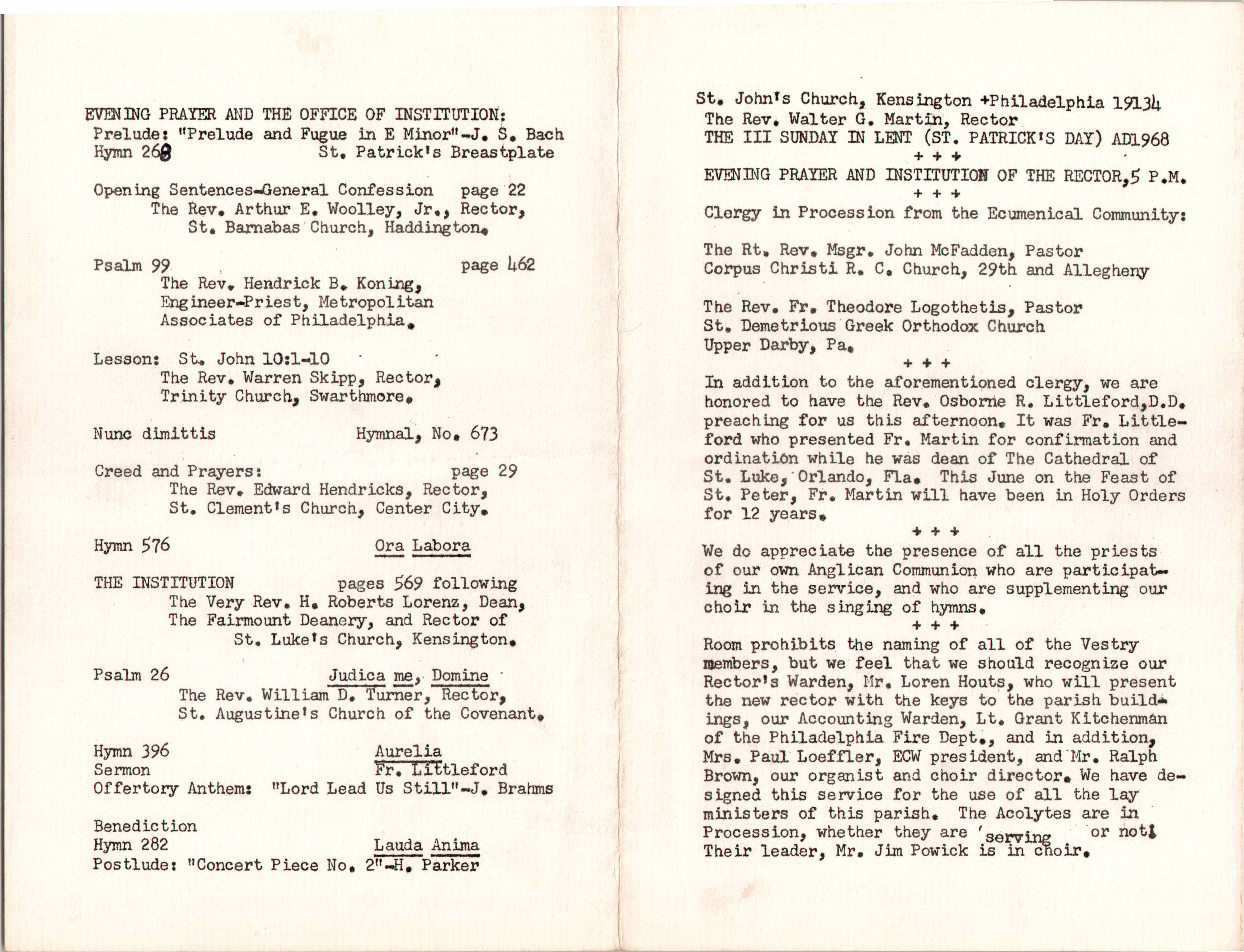 “The self-study has been started in the fall of 1963, carried out by the Division of Research and Field Study of the Executive Council of the Episcopal Church in New York. It was completed a year later. By the fall of 1965, the data had been organized and analyzed, and the results were ready to be reported and discussed…..The self-study was about people rather than property or finances, though the need for money is evident in the report. In many ways, the picture that emerged was one of which to be proud…The most depressing findings, however, had to do with the low state of morale and the weakness of the lines of communication among members of different parishes. Too many divisions existed. Race and class were the unspoken divides here. Lay leadership did not seem especially strong to the study group, nor were the Convocations, or regional groupings, very effective. Furthermore, the number of communicants were flat, while the population in the metropolitan area was growing.” – Sheldon Hackney, This Far By Faith: Tradition and Change in the Episcopal Diocese of Pennsylvania, pp. 308-309.