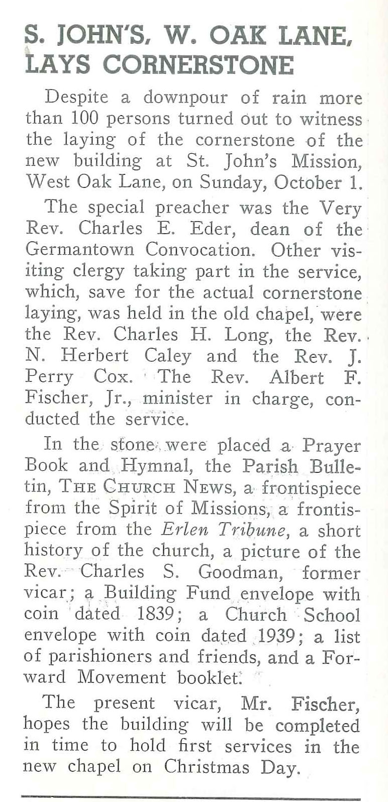 Report on White Missions of the Diocese of Pennsylvania (1938)