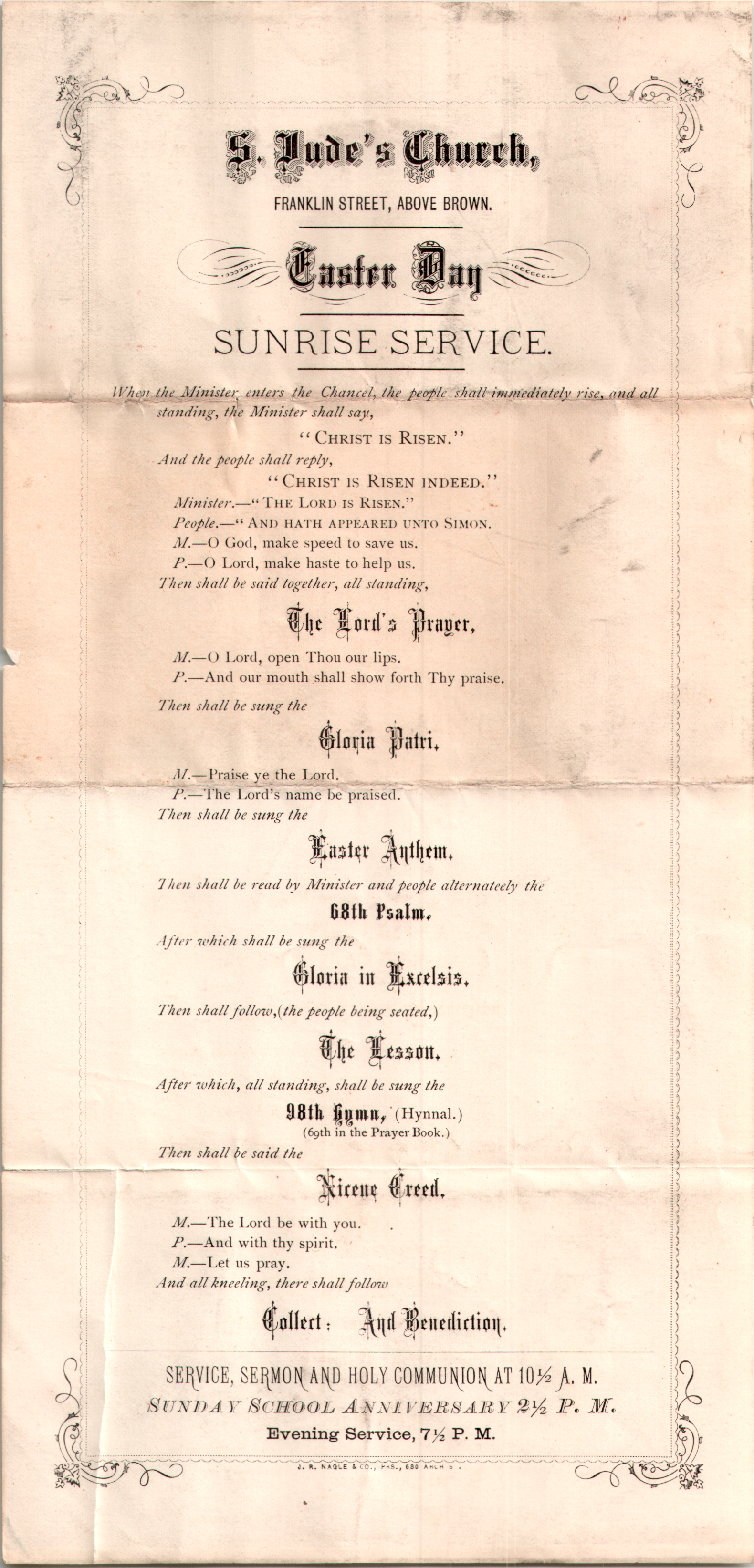Listing of Lenten Week-Day Services of Philadelphia Parishes (1870s)