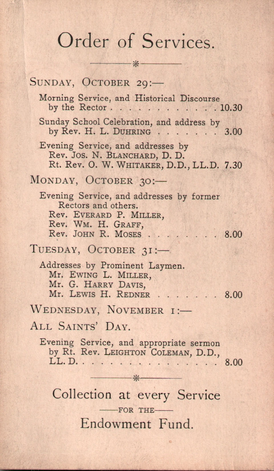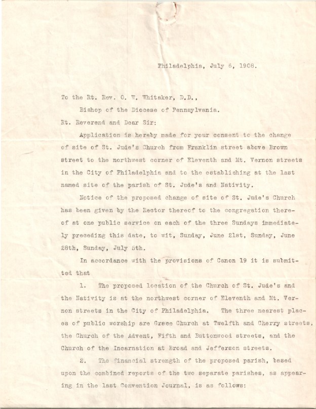 From the Archives of the Diocese of Pennsylvania. After a review of the 1879 Convention Journal, it is safe to conclude that the matter in question regarded proposed canons that arose from the Committee on St. Clement’s Church.