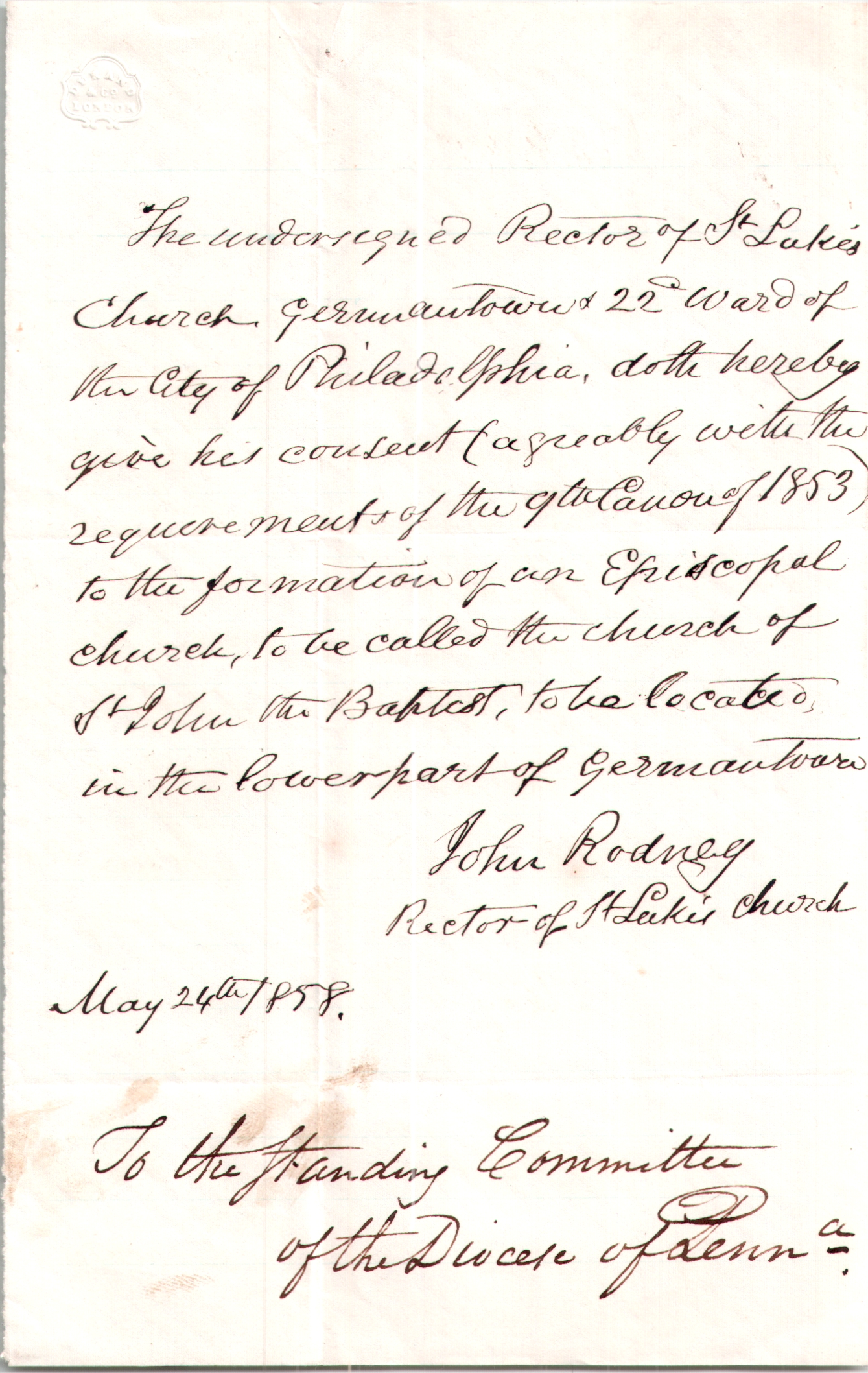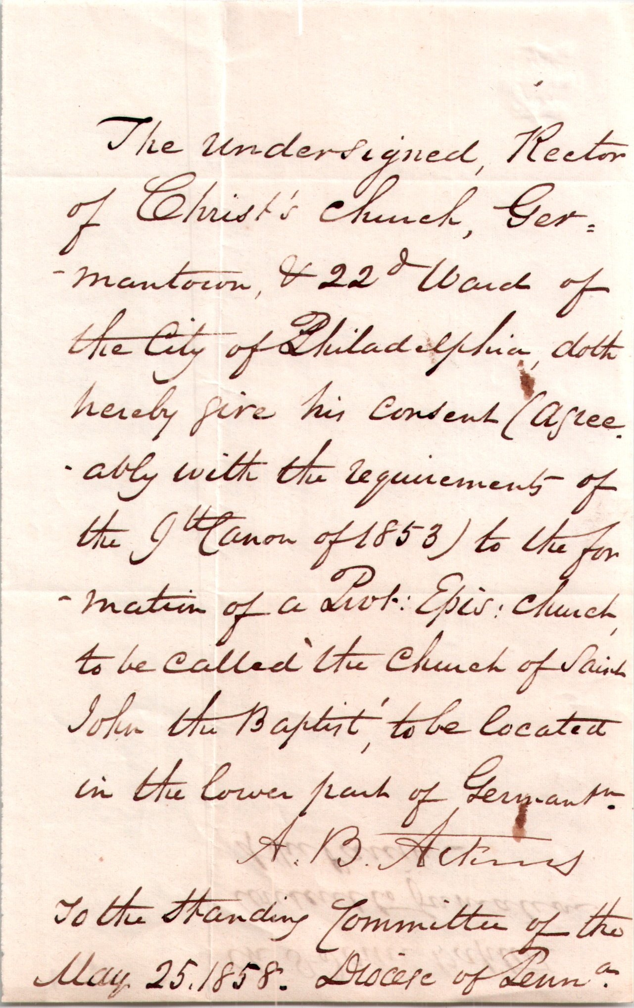 From the Archives of the Diocese of Pennsylvania. Click on the image to access the document.