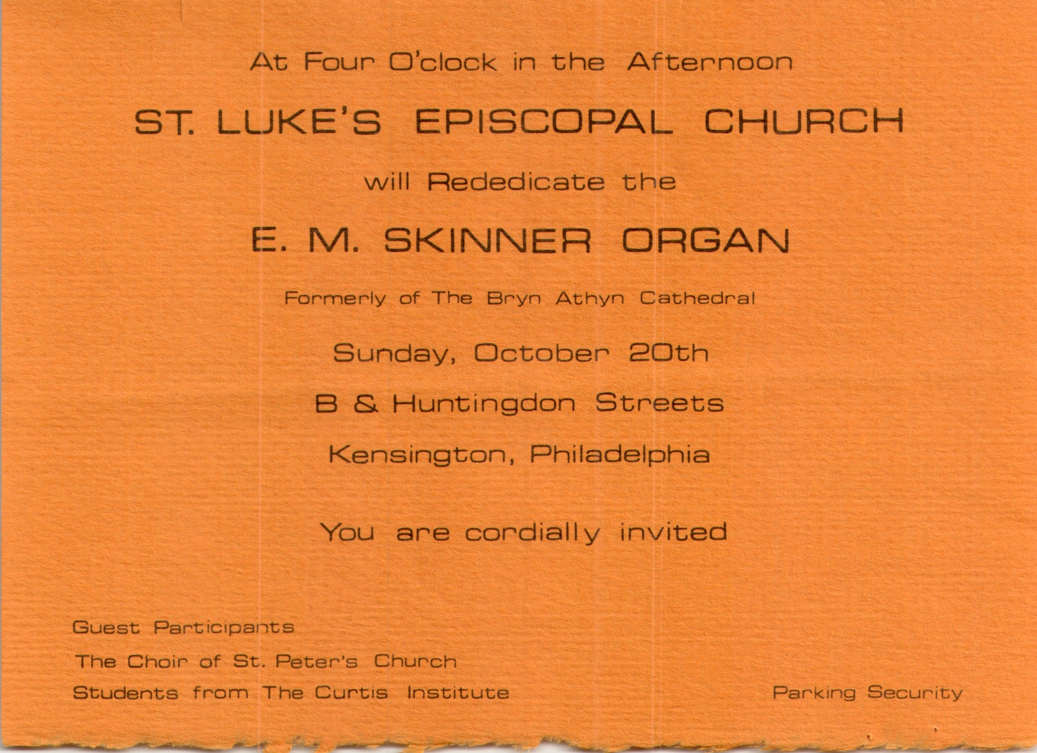 Invitation to the Rededication of the Organ at St. Luke’s Church, Kensington (1974)
