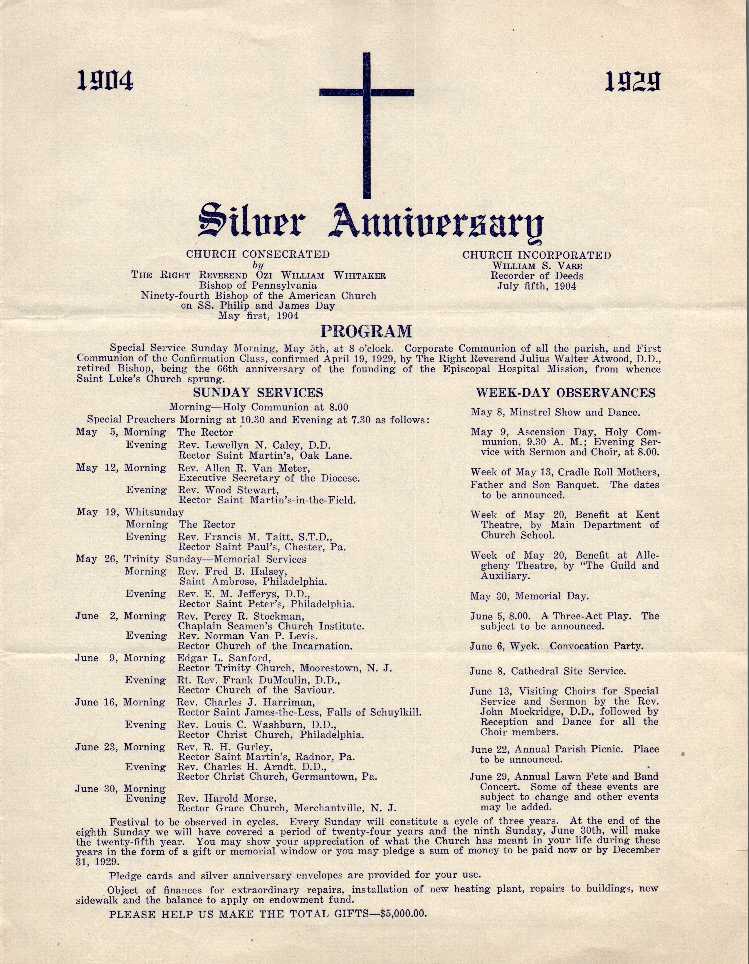 Program for the Annual Dedication Festival of St. Luke’s Church, Kensington (n.d.)
