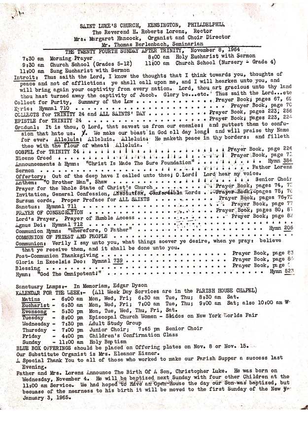 “The self-study has been started in the fall of 1963, carried out by the Division of Research and Field Study of the Executive Council of the Episcopal Church in New York. It was completed a year later. By the fall of 1965, the data had been organized and analyzed, and the results were ready to be reported and discussed…..The self-study was about people rather than property or finances, though the need for money is evident in the report. In many ways, the picture that emerged was one of which to be proud…The most depressing findings, however, had to do with the low state of morale and the weakness of the lines of communication among members of different parishes. Too many divisions existed. Race and class were the unspoken divides here. Lay leadership did not seem especially strong to the study group, nor were the Convocations, or regional groupings, very effective. Furthermore, the number of communicants were flat, while the population in the metropolitan area was growing.” – Sheldon Hackney, This Far By Faith: Tradition and Change in the Episcopal Diocese of Pennsylvania, pp. 308-309.