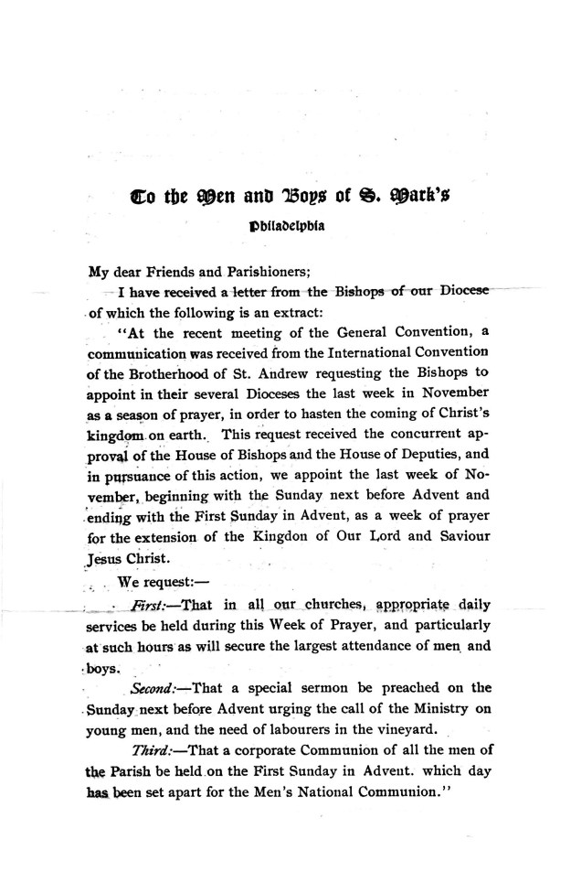 Notice to the Men and Boys of St. Mark’s Church, Philadelphia (1907)