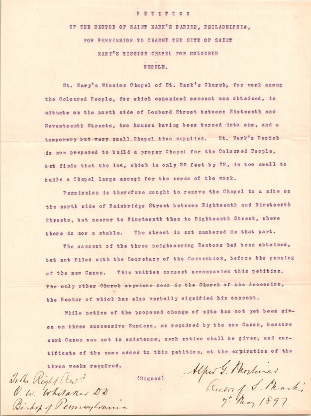 The Application of the Church of the Epiphany for a New Site at Chestnut Street West of Eighteenth, Philadelphia (1895)