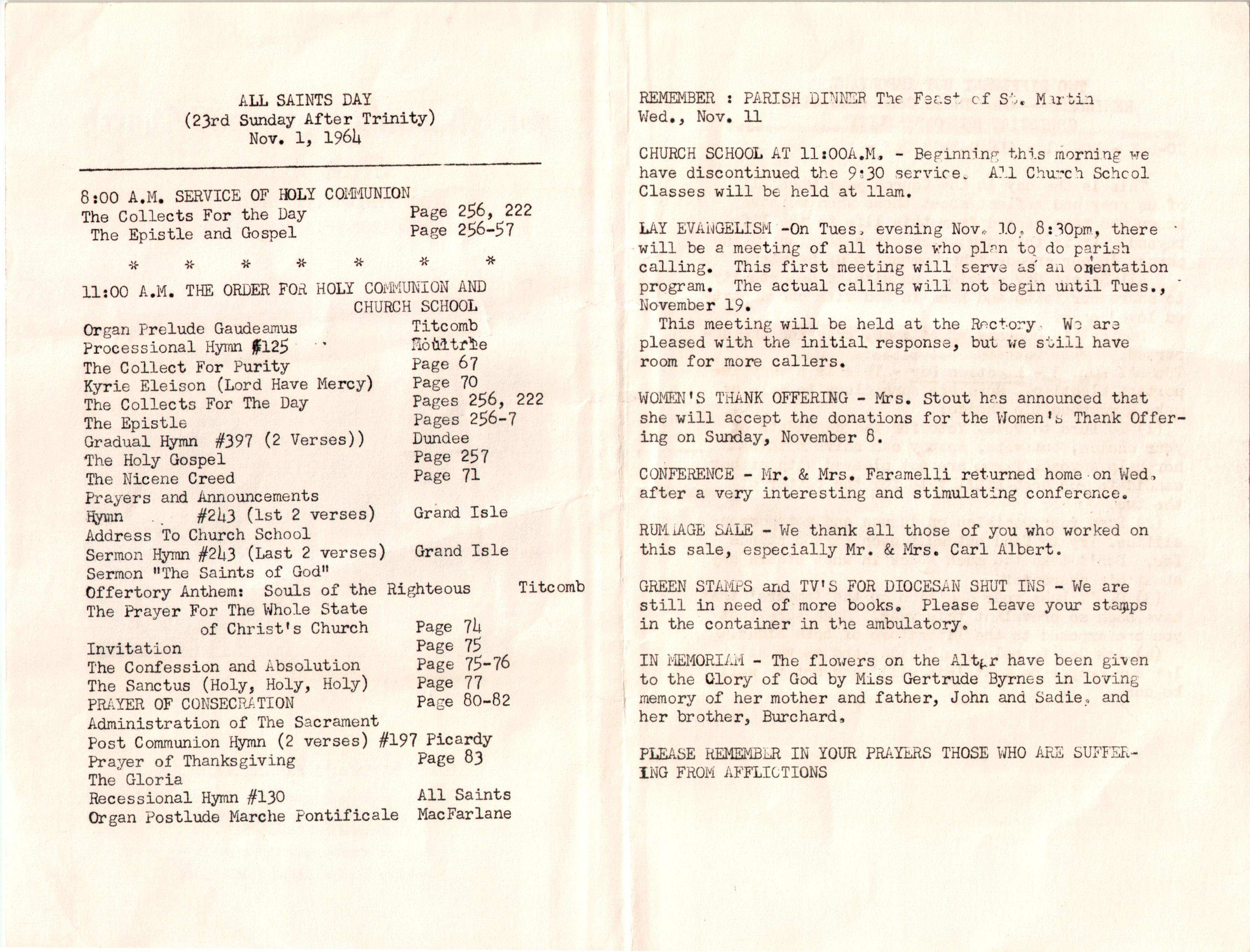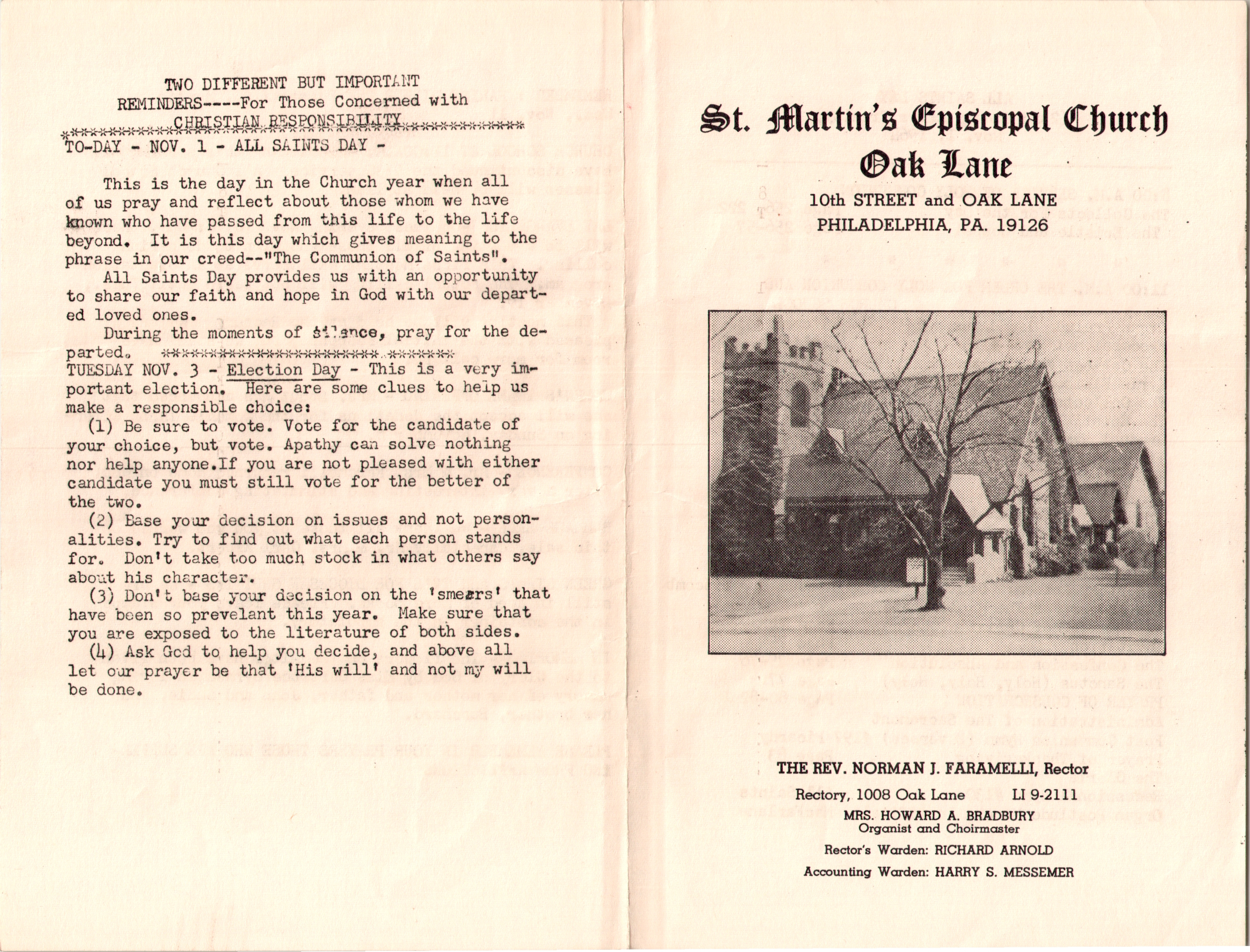 Service Leaflet for All Saints’ Day at St. Martin’s Church, Oak Lane (1964)