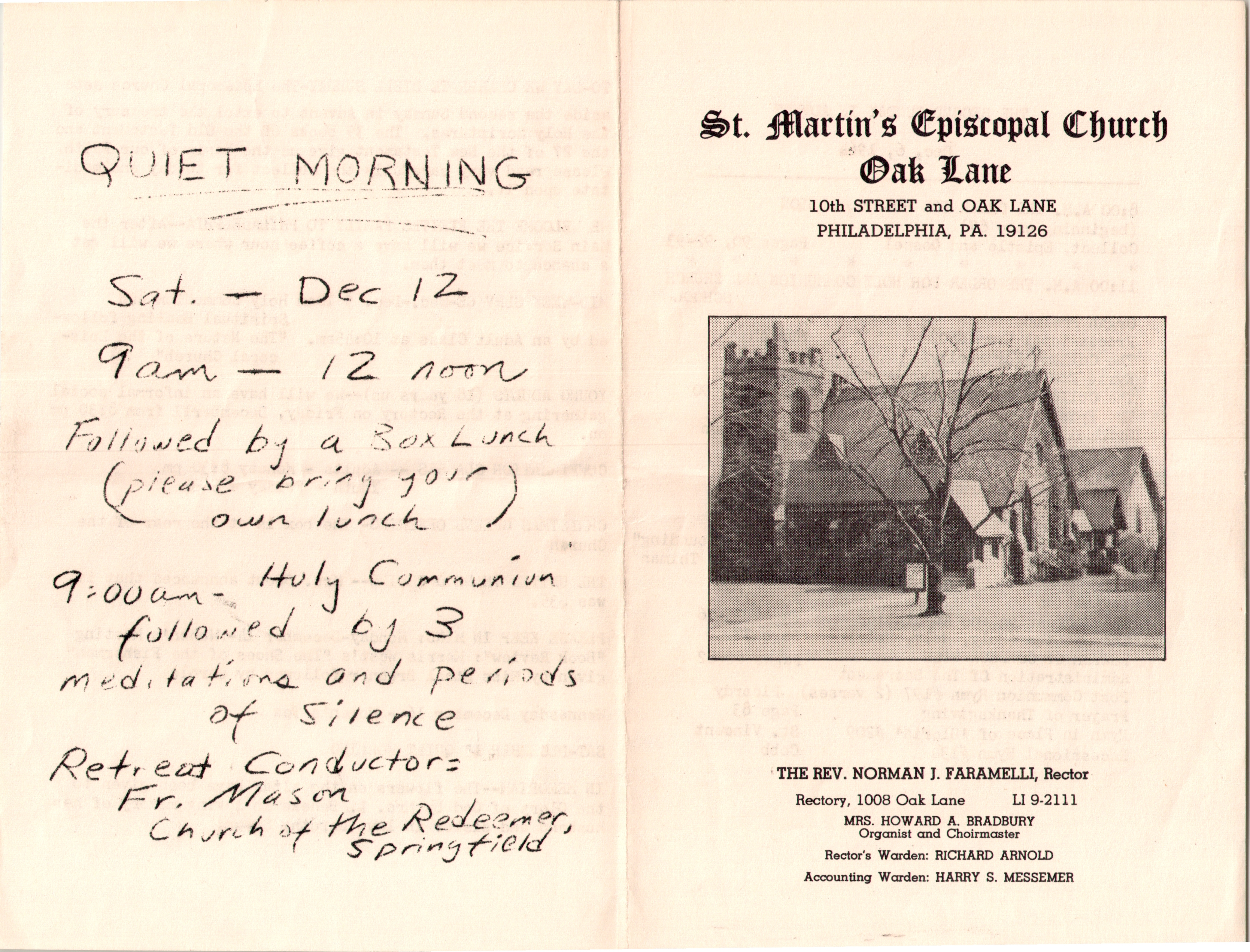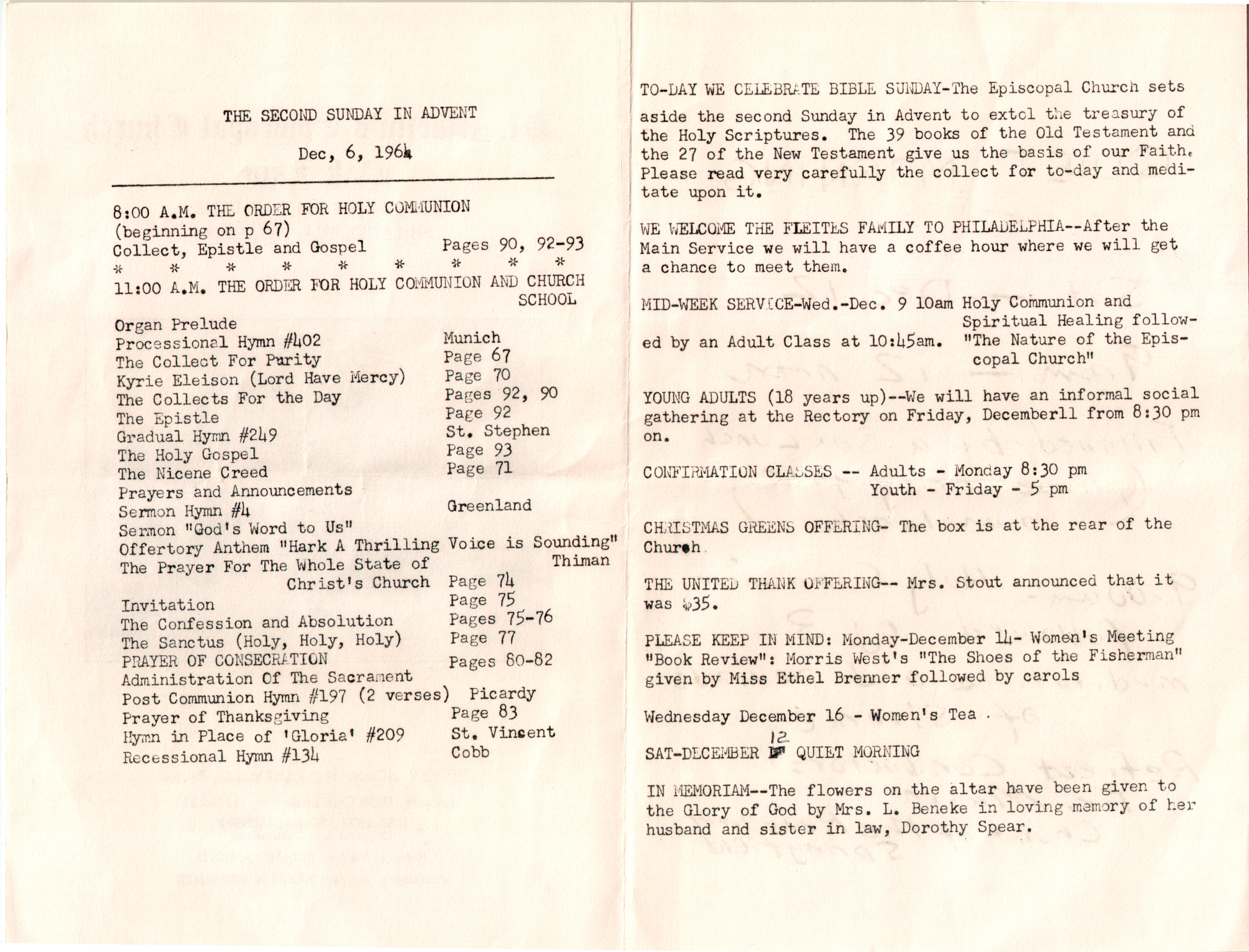 Service Leaflet for the Second Sunday in Advent at St. Martin’s Church, Oak Lane (1964)