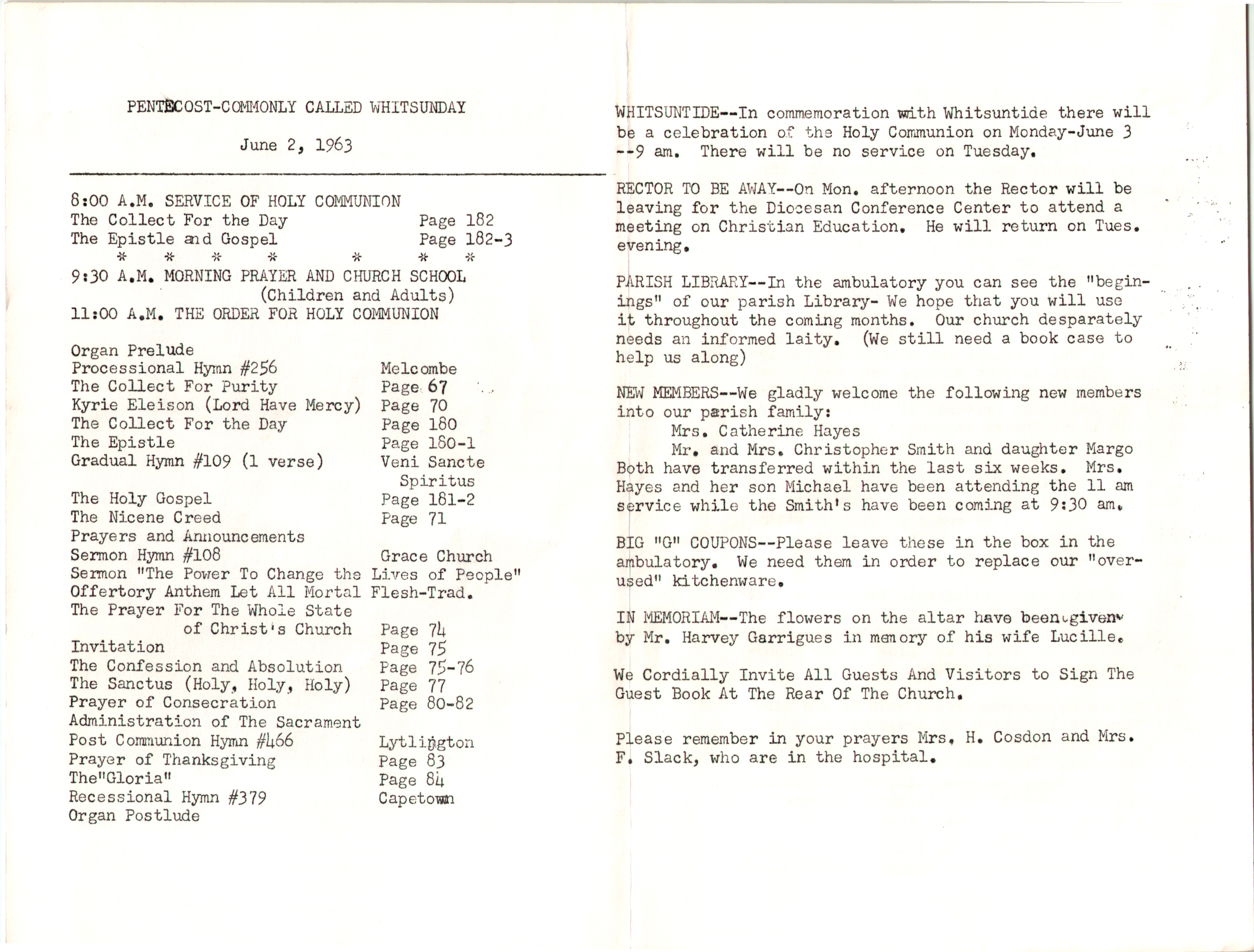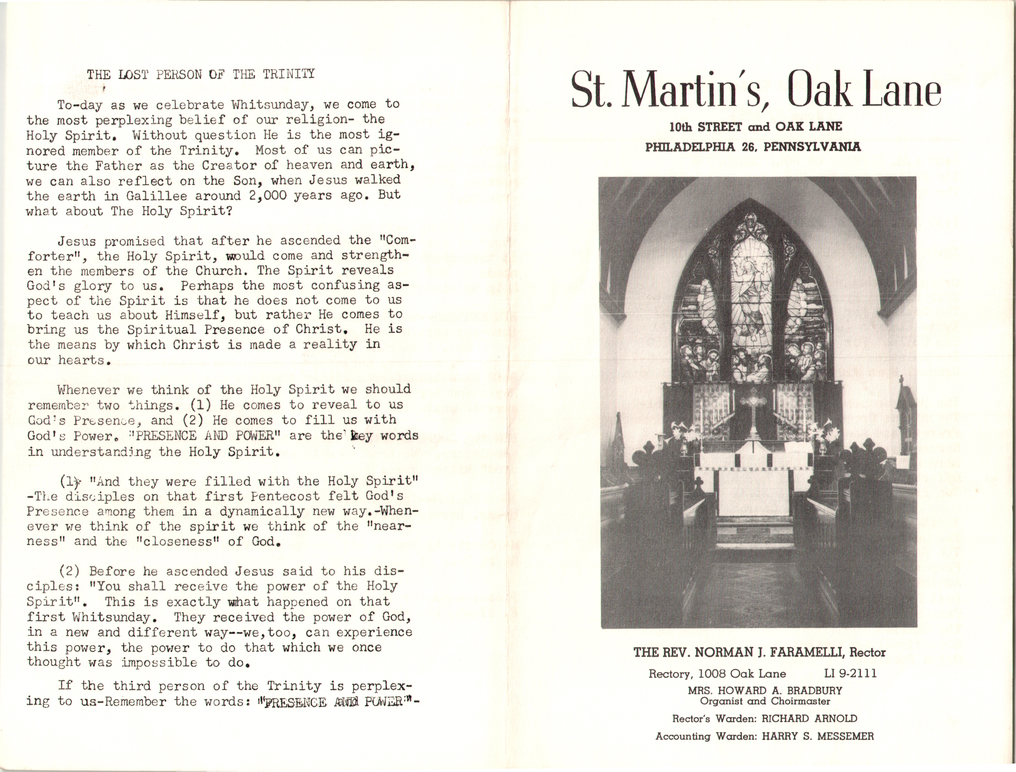 Service Leaflet for Pentecost at St. Martin’s Church, Oak Lane (1963)