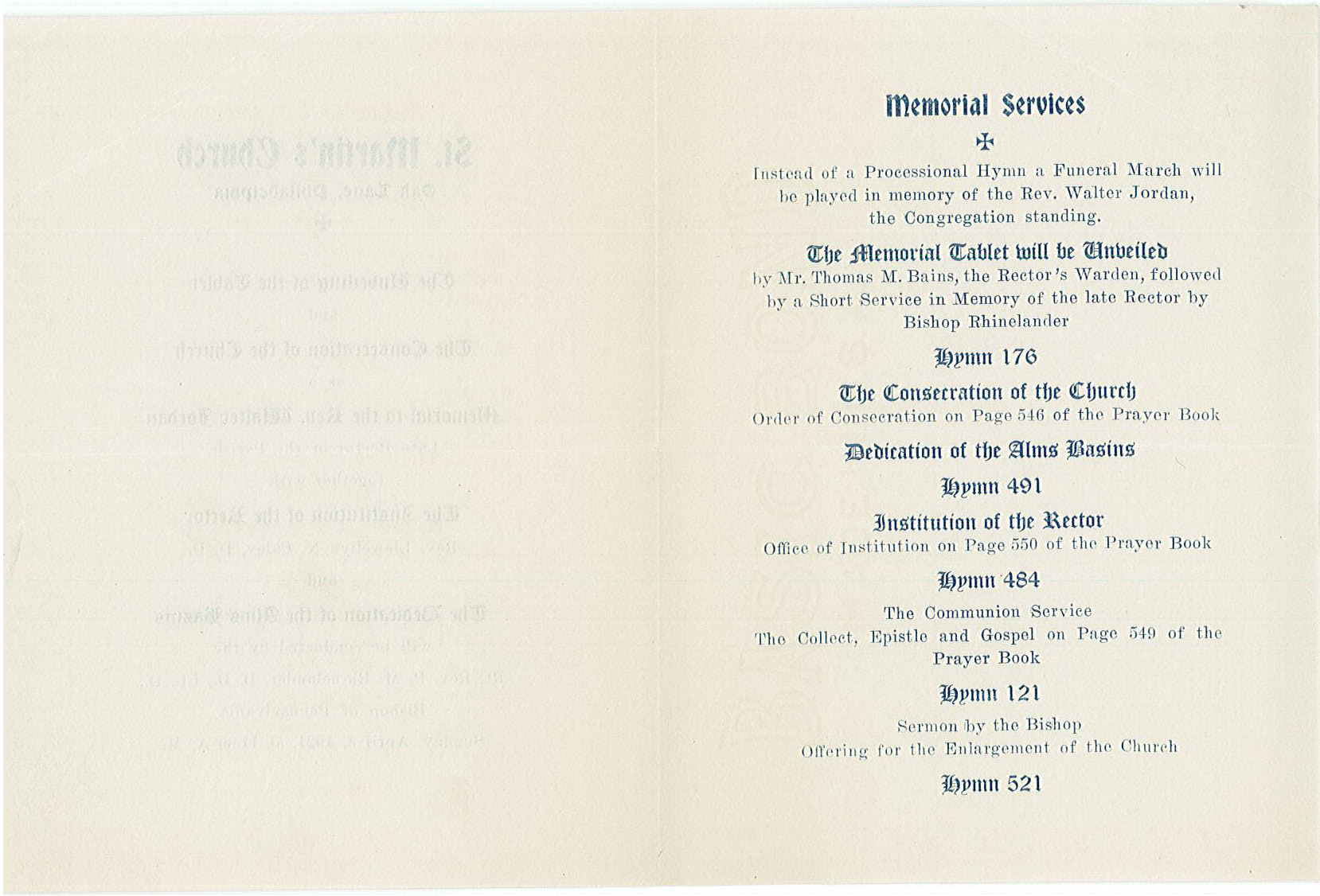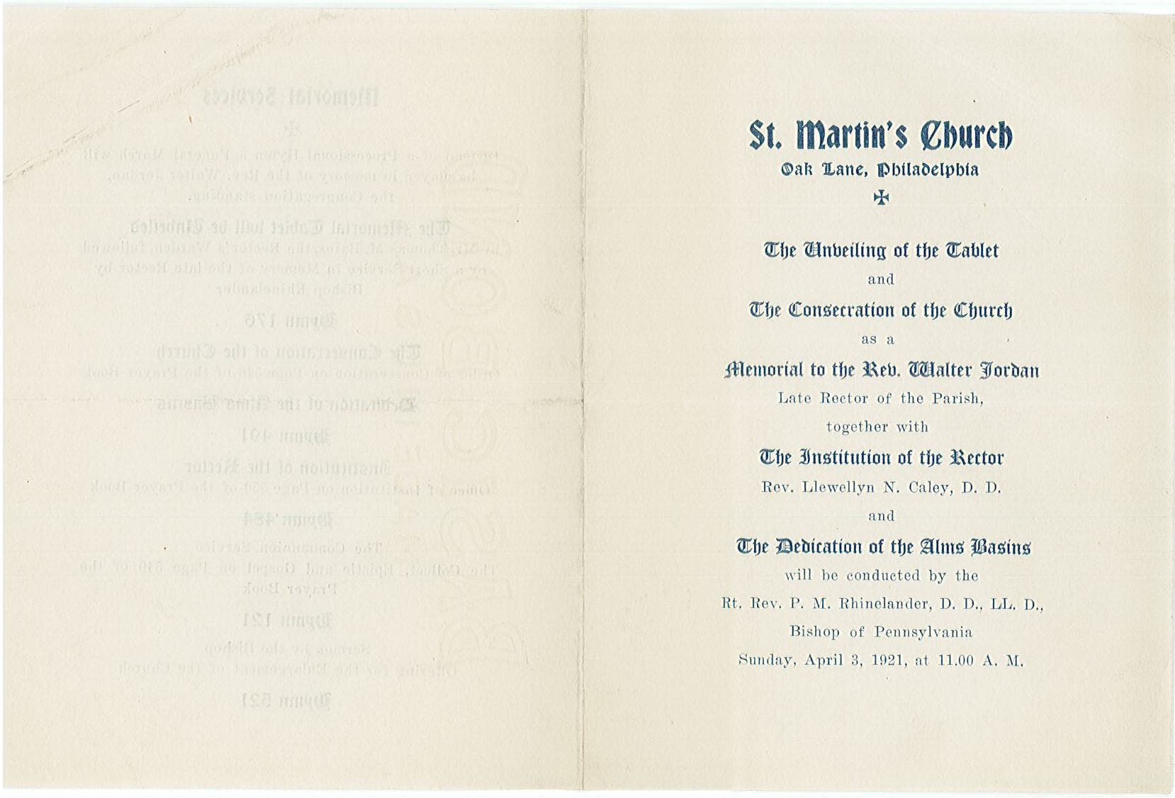 Program for the Dedication of the Chimes and Organ and the Institution of Rev. Percy G. Hall as Rector of St. Martin’s Church, Oak Lane (1932)
