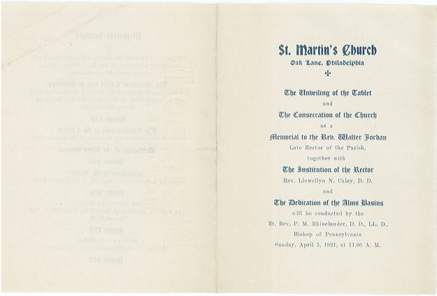 Program for the Dedication of the Chimes and Organ and the Institution of the Rev. Percy G. Hall as Rector of St. Martin’s Church, Oak Lane (1932)