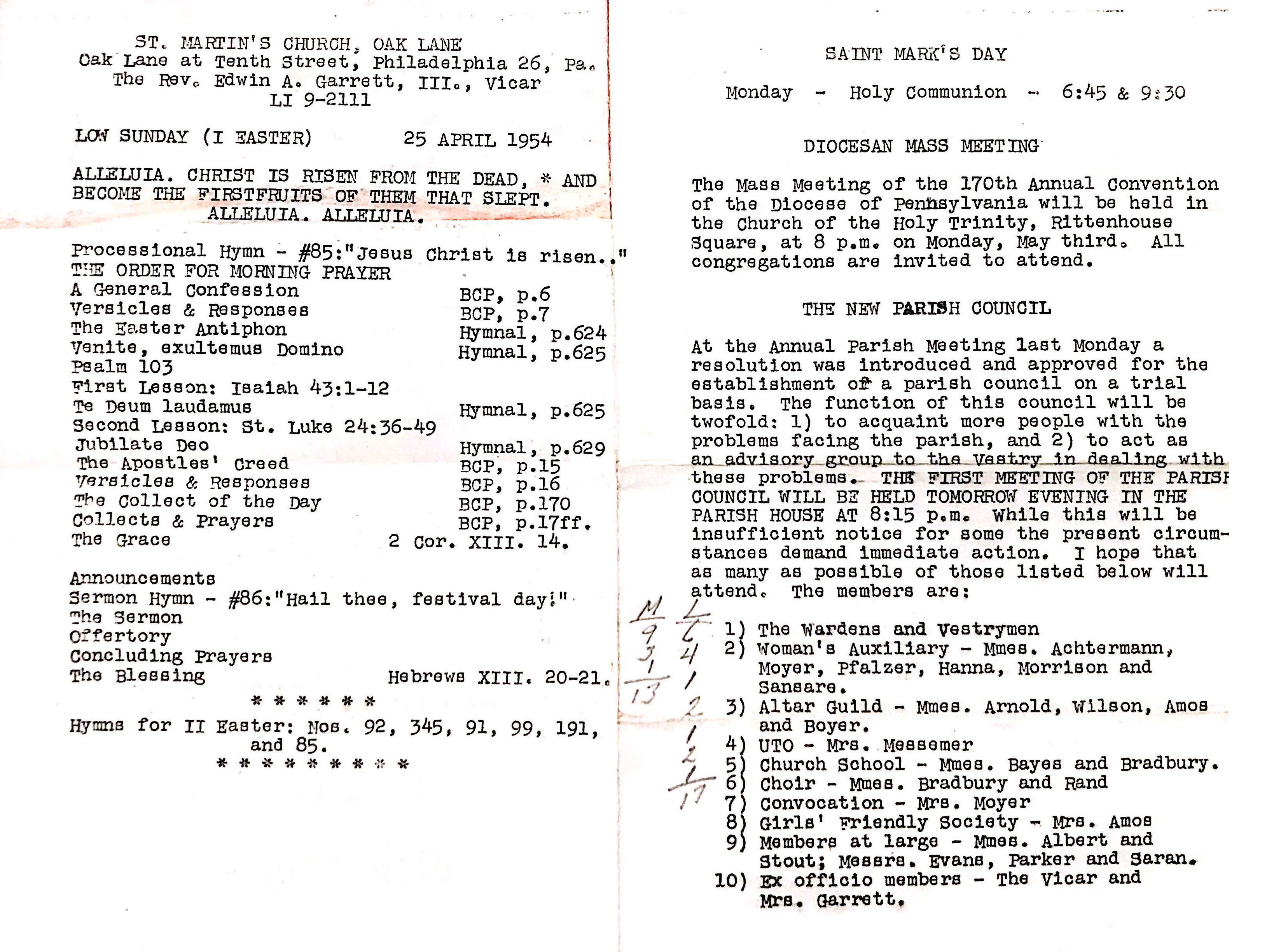 Service Leaflet for the First Sunday after Easter at St. Martin’s Church, Oaklane (1954)